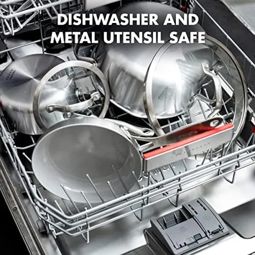 Коллекция Venice Pro безболезненна и безболезненна - это невероятное сочетание легкости антипригарного покрытия и великолепного стиля из нержавеющей стали. Безопасное для металлической посуды керамическое антипригарное покрытие этой коллекции Thermolon Minerals Pro обогащено бриллиантами, обеспечивающими невероятную прочность, сбалансированный нагрев и легкую очистку.Thermolon может делать то, что не могут другие антипригарные покрытия, а это означает легкое обжаривание, тушение и деглазирование, не беспокоясь о беспорядке. Корпуса из 3-слойной нержавеющей стали имеют уникальную отделку Evershine, которая помогает предотвратить обесцвечивание и дольше сохраняет ваши сковороды как новые. Матовые клепаные ручки из нержавеющей стали позволяют легко переходить от плиты к духовке.