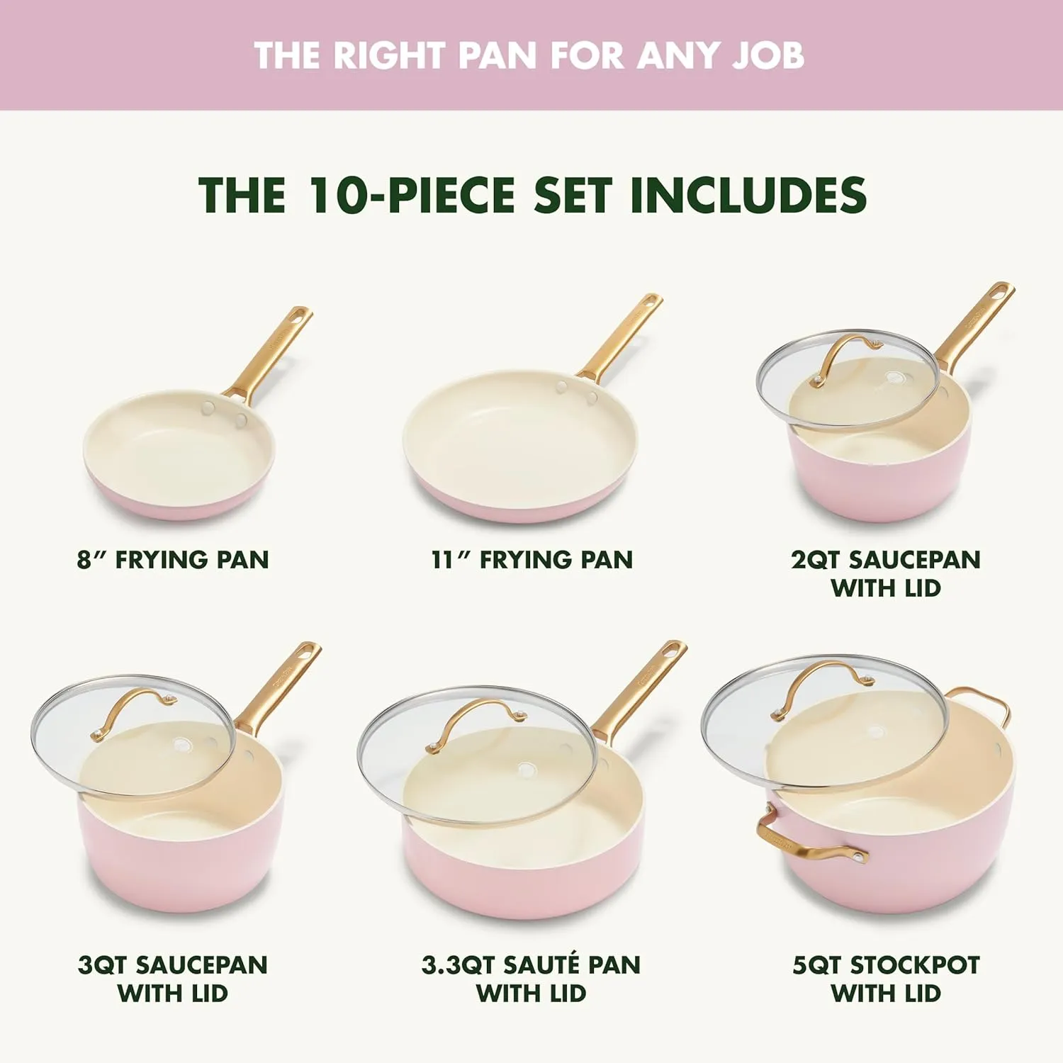 Набор посуды GreenPan, 10 предметов, розовый