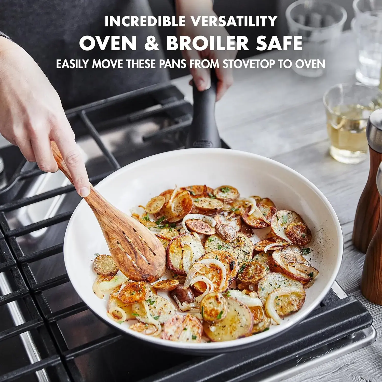 Добавьте немного цвета в вашу кухню с ярким стилем коллекции GreenPan Rio. Этот набор из 16 предметов включает все кастрюли и сковороды, которые вам нужны для приготовления более чистых блюд. Почему? Каждая из этих кастрюль и сковород изготовлена с использованием нашего здорового керамического антипригарного покрытия Thermolon - простого в использовании, легко очищаемого покрытия, свободного от PFAS, PFOA, свинца и кадмия, что делает приготовление пищи беззаботным. В отличие от многих других антипригарных покрытий, оно никогда не выделяет токсичные пары, даже при перегреве. Это прочное покрытие армировано алмазами, чтобы обеспечить высокую антипригарную производительность на более длительный срок. Прочная конструкция набора обеспечивает равномерное распределение тепла, в то время как ручки из бакелита остаются прохладными и обеспечивают комфортный захват и полный контроль. Прочные стеклянные крышки позволяют легко следить за процессом приготовления без потери тепла.