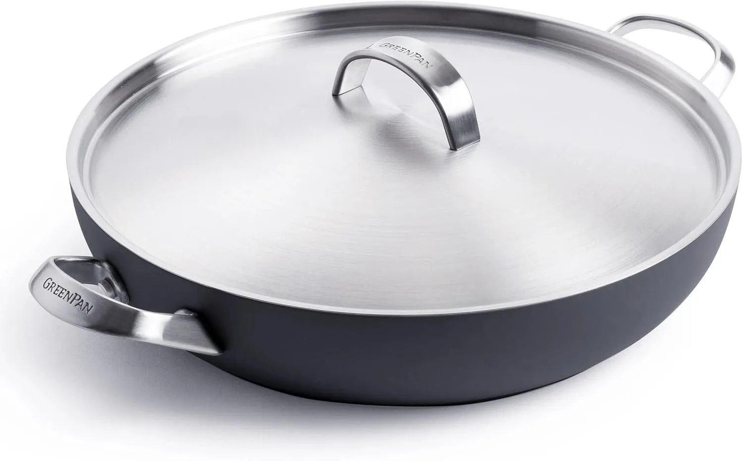 Пробудите ваши соусы и гарниры с помощью этой легкой в использовании сковороды с крышкой из коллекции Paris Pro. Антипригарное покрытие Thermolon из здоровой керамики защищено алмазами, что делает его безопасным для металлических кухонных принадлежностей и высоко чувствительным к теплу. Керамическое антипригарное покрытие GreenPan помогает сделать любое блюдо более здоровым, так как оно не содержит PFAS, PFOA, свинца и кадмия и никогда не выделяет токсичные пары, даже при перегреве. Эта сковорода с крышкой изготовлена из жесткого анодированного алюминия, который в 2 раза прочнее нержавеющей стали и способствует быстрому и равномерному нагреву. Нержавеющая крышка облегчает переноса сковороды с конфорки в духовку, а эргономичная ручка из нержавеющей стали заклепана для надежного хвата. Можно мыть в посудомоечной машине. Безопасно для использования в духовке и гриле при температуре до 600°F.