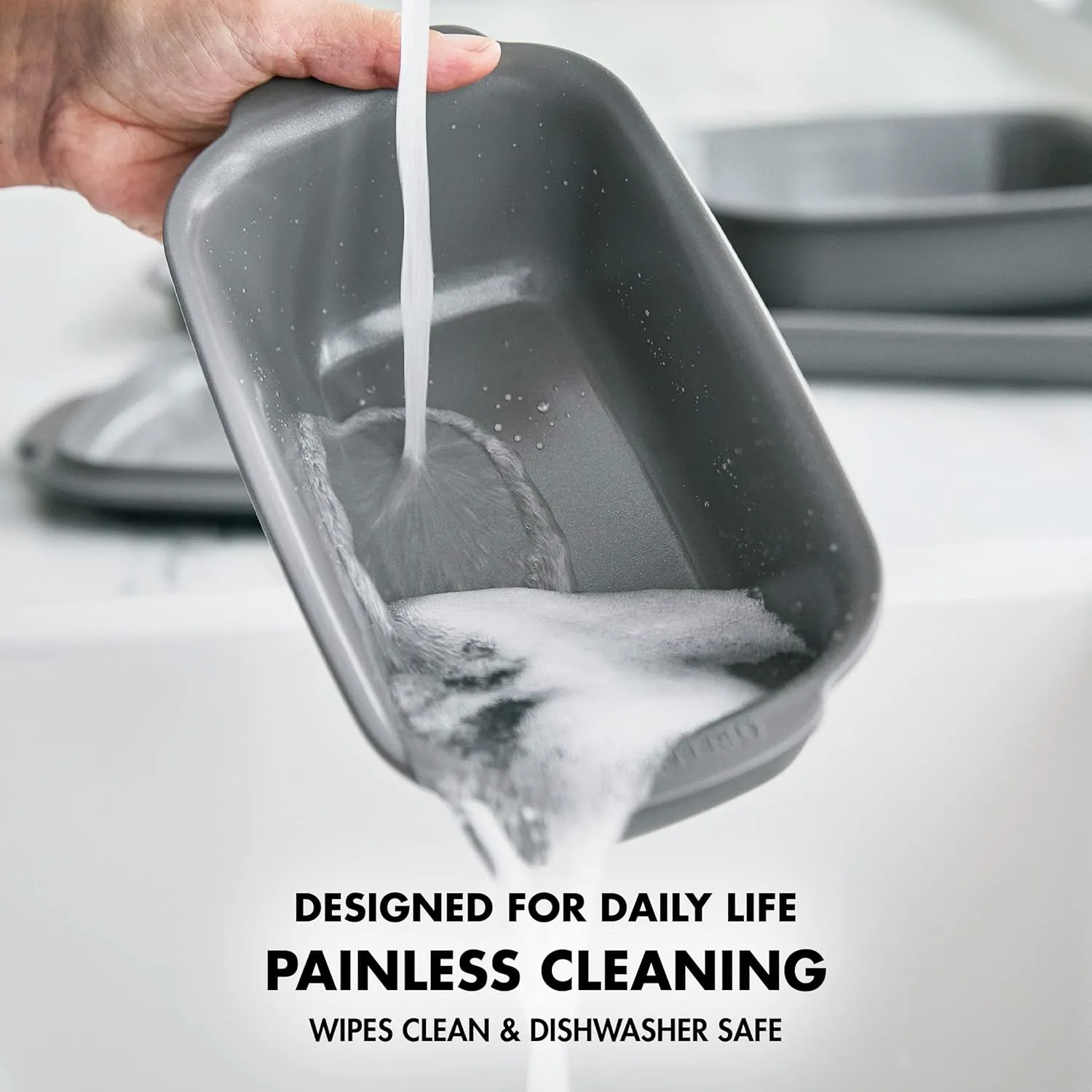 Эта кастрюля для выпечки с повышенной прочностью отлично подходит для хлеба, но также обладает бесконечной универсальностью - подумайте о мясном хлебе, меньших зити, куриных пирогах и многом другом. Эта сковорода изготовлена из литого алюминия, что обеспечивает быстрое, равномерное нагревание и выдающуюся прочность. Уникальный тяжелый металл предотвращает деформацию и щелчки, обеспечивая годы сладких и соленых блюд. И чистка не вызывает затруднений благодаря нашей здоровой керамической антипригарной поверхности, свободной от PFAS, PFOA, свинца и кадмия для беспечных блюд. Откройте для себя лучшее приготовление пищи в духовке с Premiere.