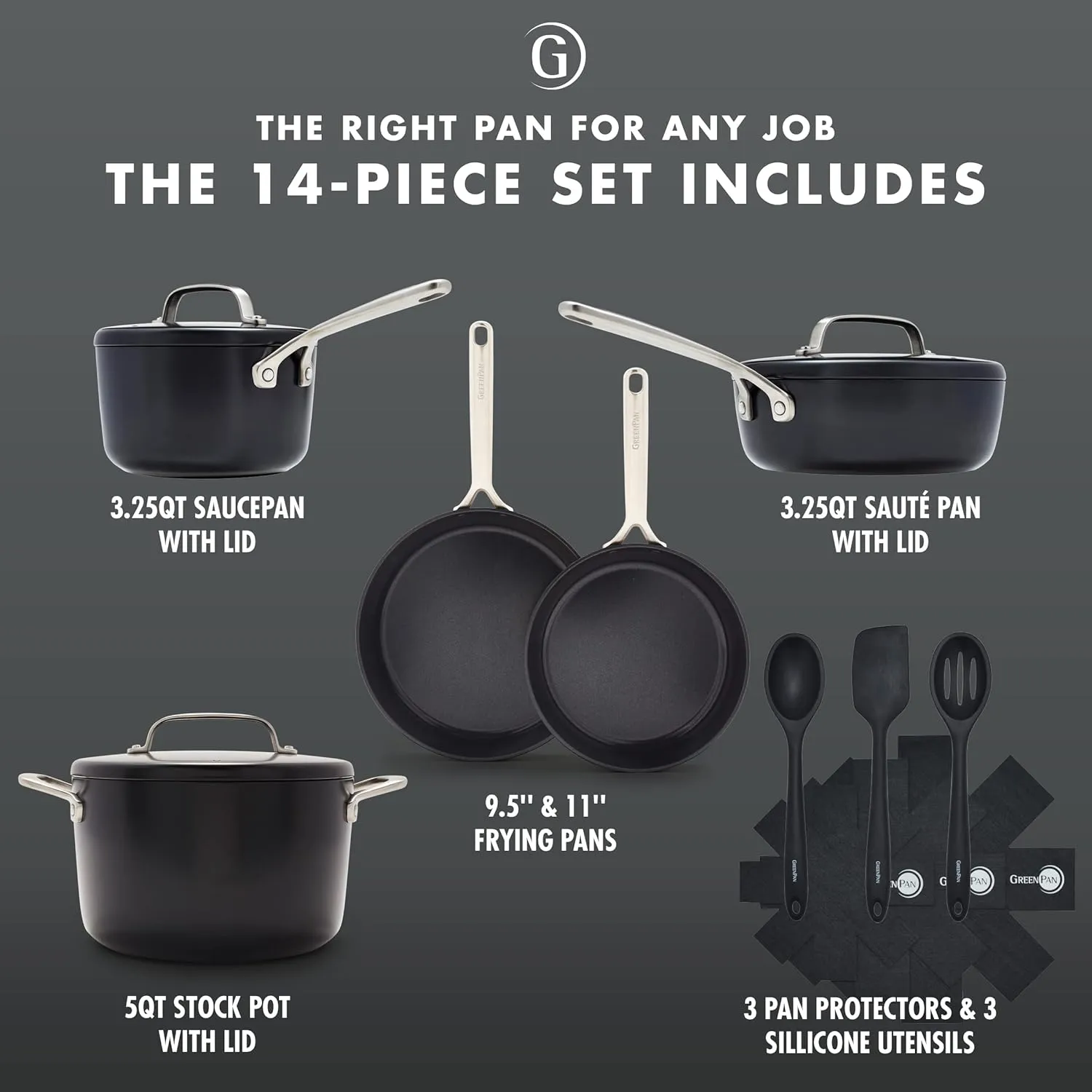 Набор керамической посуды GreenPan GP5, 14 предметов, черный