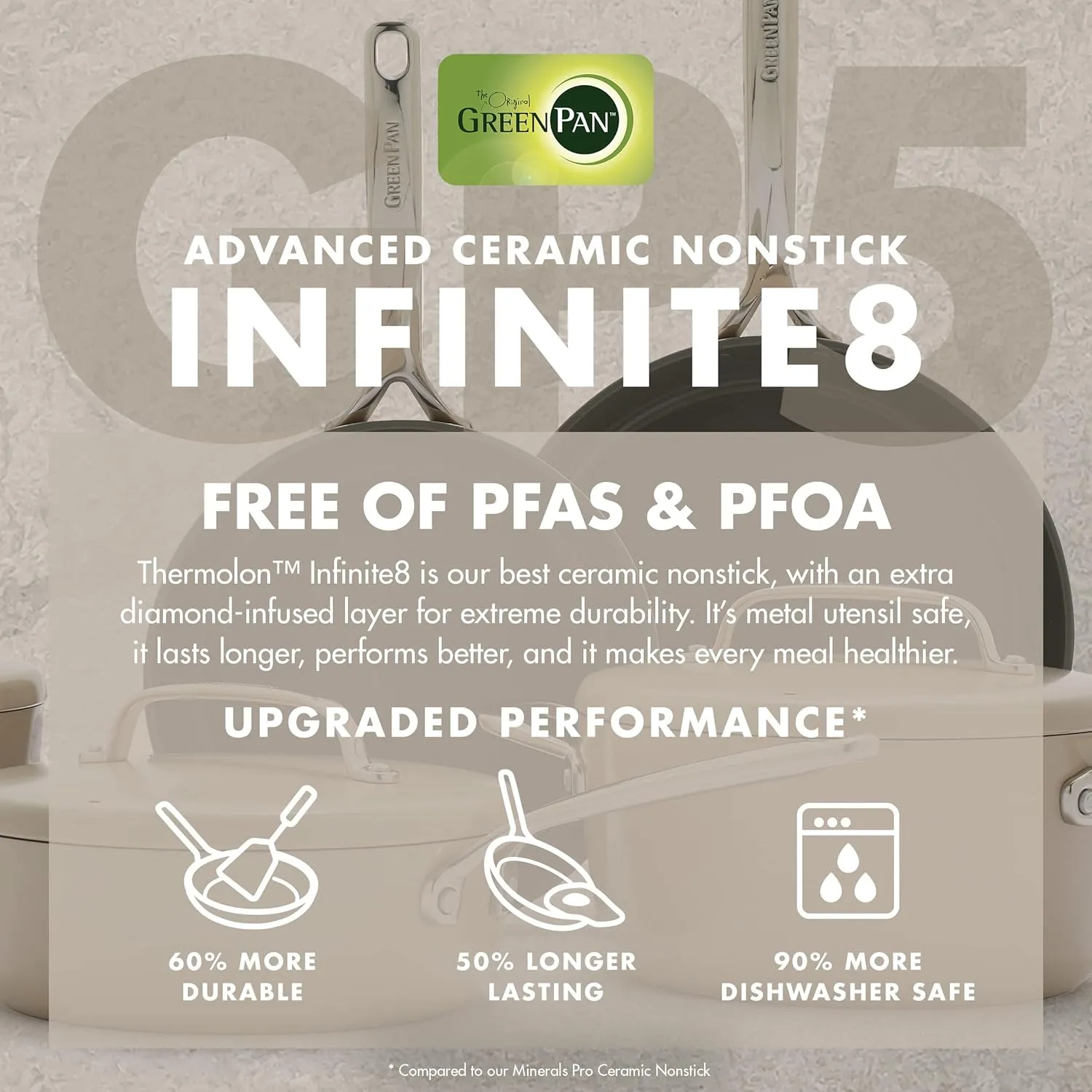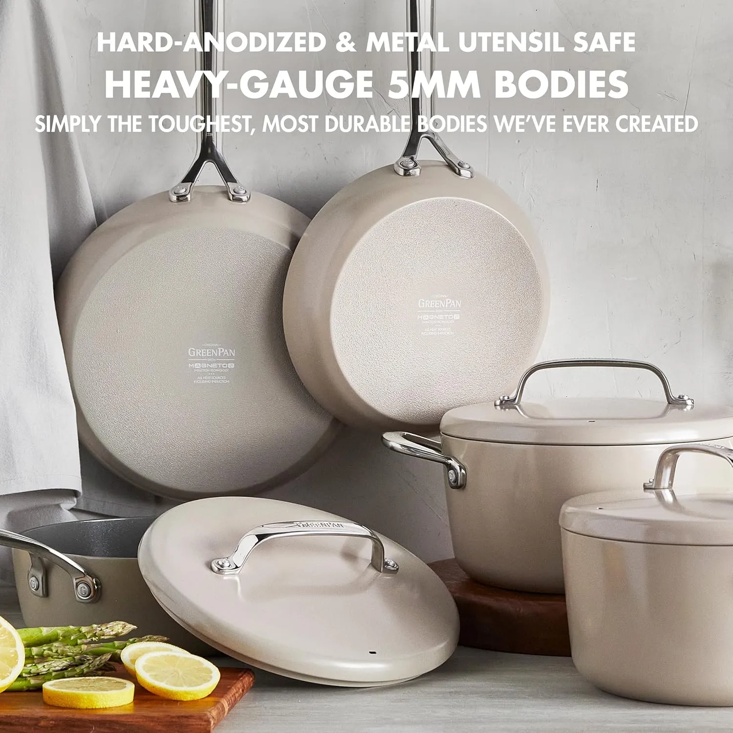 GP5 объединяет 15 лет инноваций, ориентированных на кулинарию, в одной передовой коллекции. Эти чрезвычайно продуманные кастрюли и сковороды находятся в своем собственном классе. Вы можете не заметить интегрированные технологии с первого взгляда, но оцените их, когда начнете готовить. Этот набор предназначен для того, чтобы легко готовить все, от тушеных куриных бедер до простых утренних яиц. Независимо от того, что вы готовите, вы можете использовать меньше масла и получить более плотный контакт с инновационной базой Balance Pro этой сковороды. Все сковороды сгибаются, когда они нагреваются, но ультратолстые сковороды диаметром 5 мм и сковорода для обжаривания из этой коллекции спроектированы так, чтобы сгибаться внутрь, что означает, что масло остается там, где вы его положили, а ваша еда получает максимальный контакт с сковородой. Мы изобрели керамическую антипригарную посуду 15 лет назад, и мы довели ее до совершенства с помощью Infinite8. Это революционное керамическое антипригарное покрытие является самым передовым керамическим антипригарным покрытием, когда-либо произведенным. Оно ультра-прочное, устойчиво к царапинам и включает в себя слои алмазов для необычайного. Продуктивность. Ни одно другое покрытие не может сравниться. Как всегда, оно не содержит ПФАС, чтобы сделать каждую еду более здоровой. Эти сковороды оснащены технологией индукции Magneto для выдающейся производительности на всех плитах, включая индукционные.