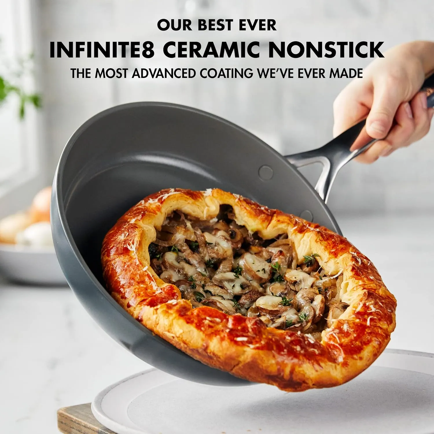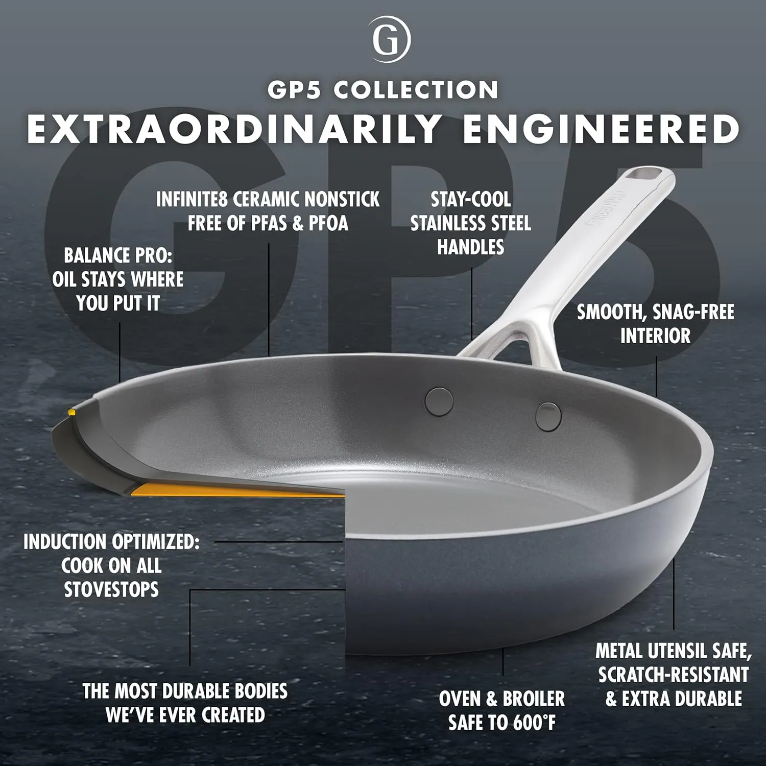 GP5 объединяет 15 лет инноваций, ориентированных на кулинарию, в одной передовой коллекции. Эти чрезвычайно продуманные кастрюли и сковороды находятся в своем собственном классе. Вы можете не заметить интегрированные технологии с первого взгляда, но оцените их, когда начнете готовить. Этот набор предназначен для того, чтобы легко готовить все, от тушеных куриных бедер до простых утренних яиц. Независимо от того, что вы готовите, вы можете использовать меньше масла и получить более плотный контакт с инновационной базой Balance Pro этой сковороды. Все сковороды сгибаются, когда они нагреваются, но ультратолстые сковороды диаметром 5 мм и сковорода для обжаривания из этой коллекции спроектированы так, чтобы сгибаться внутрь, что означает, что масло остается там, где вы его положили, а ваша еда получает максимальный контакт с сковородой.