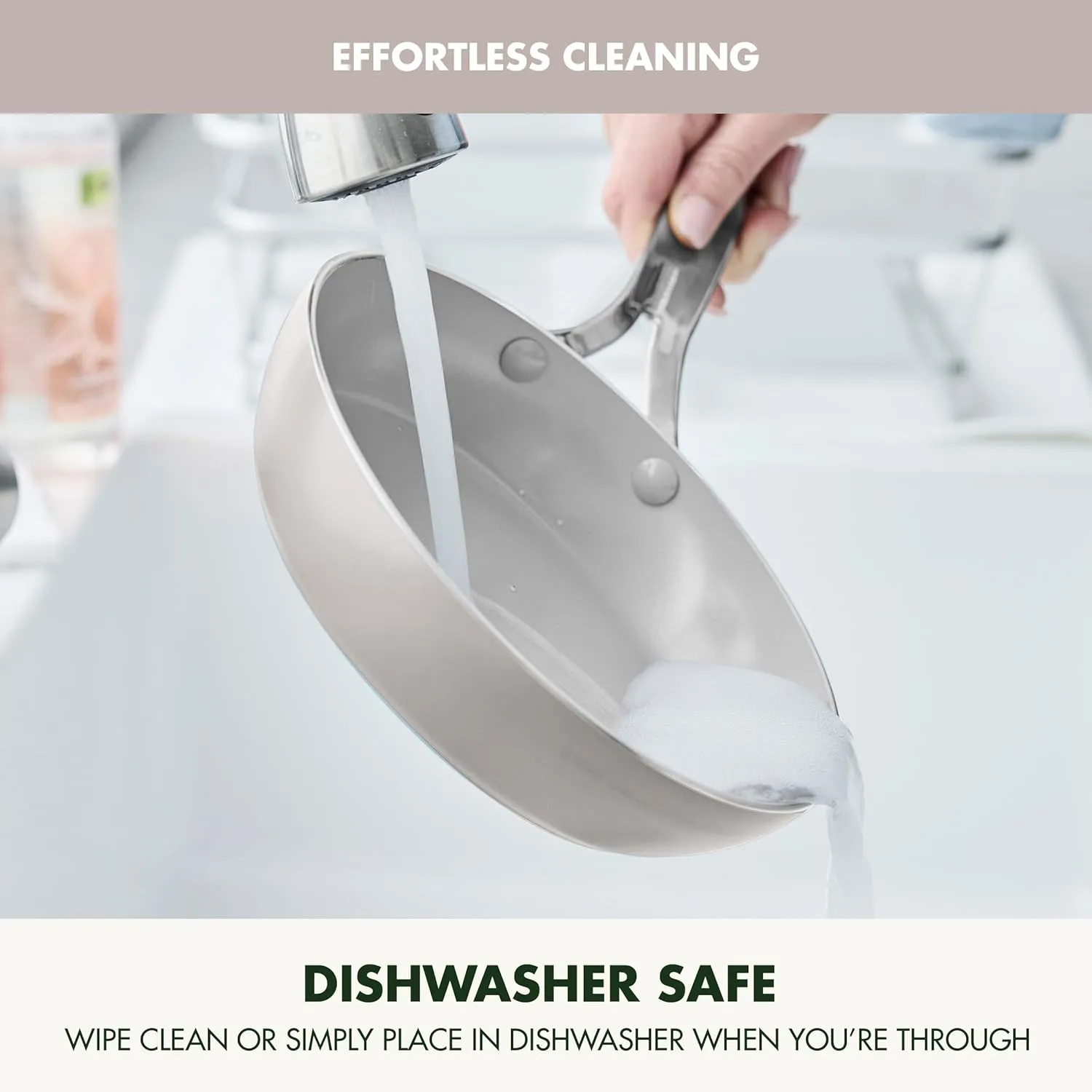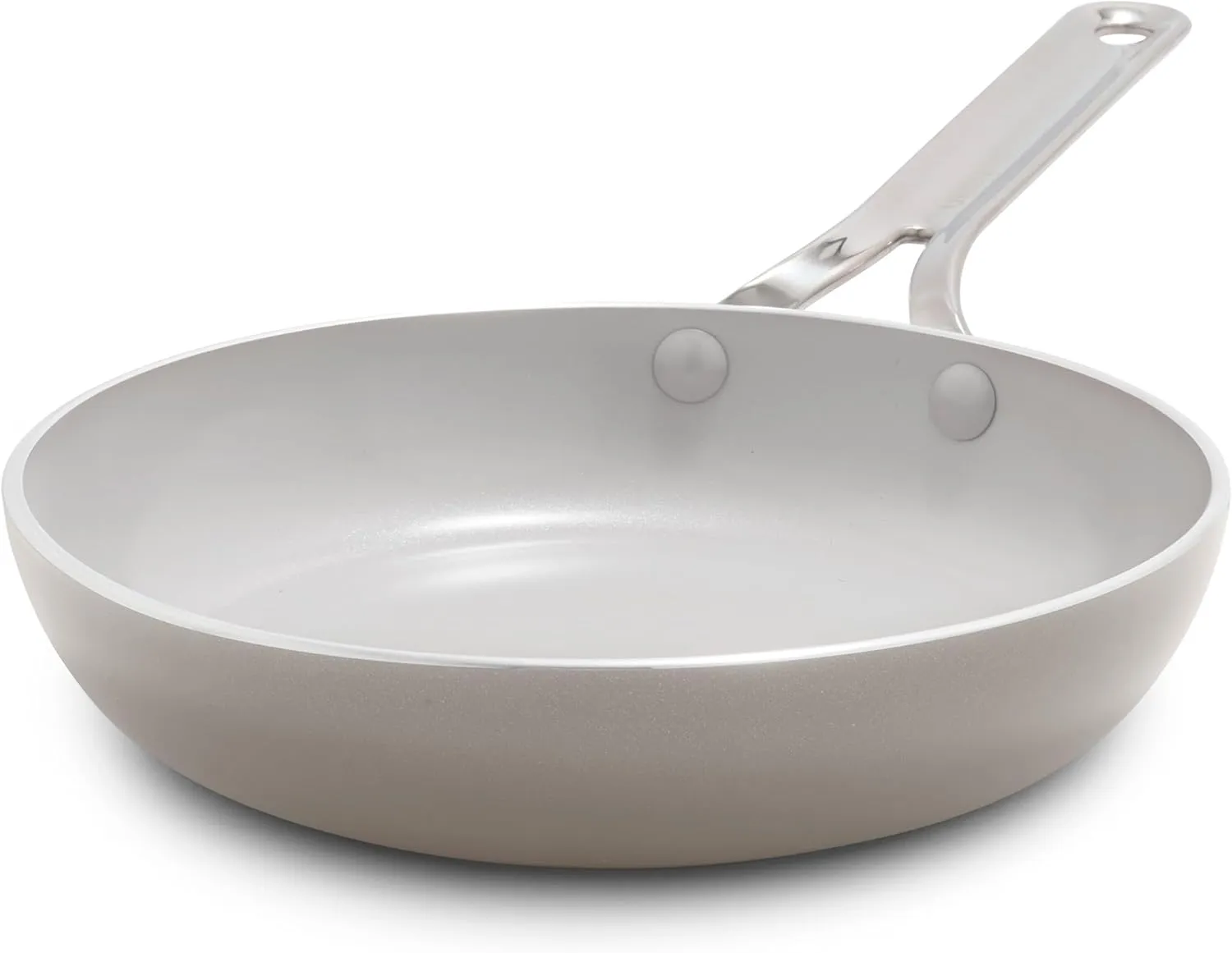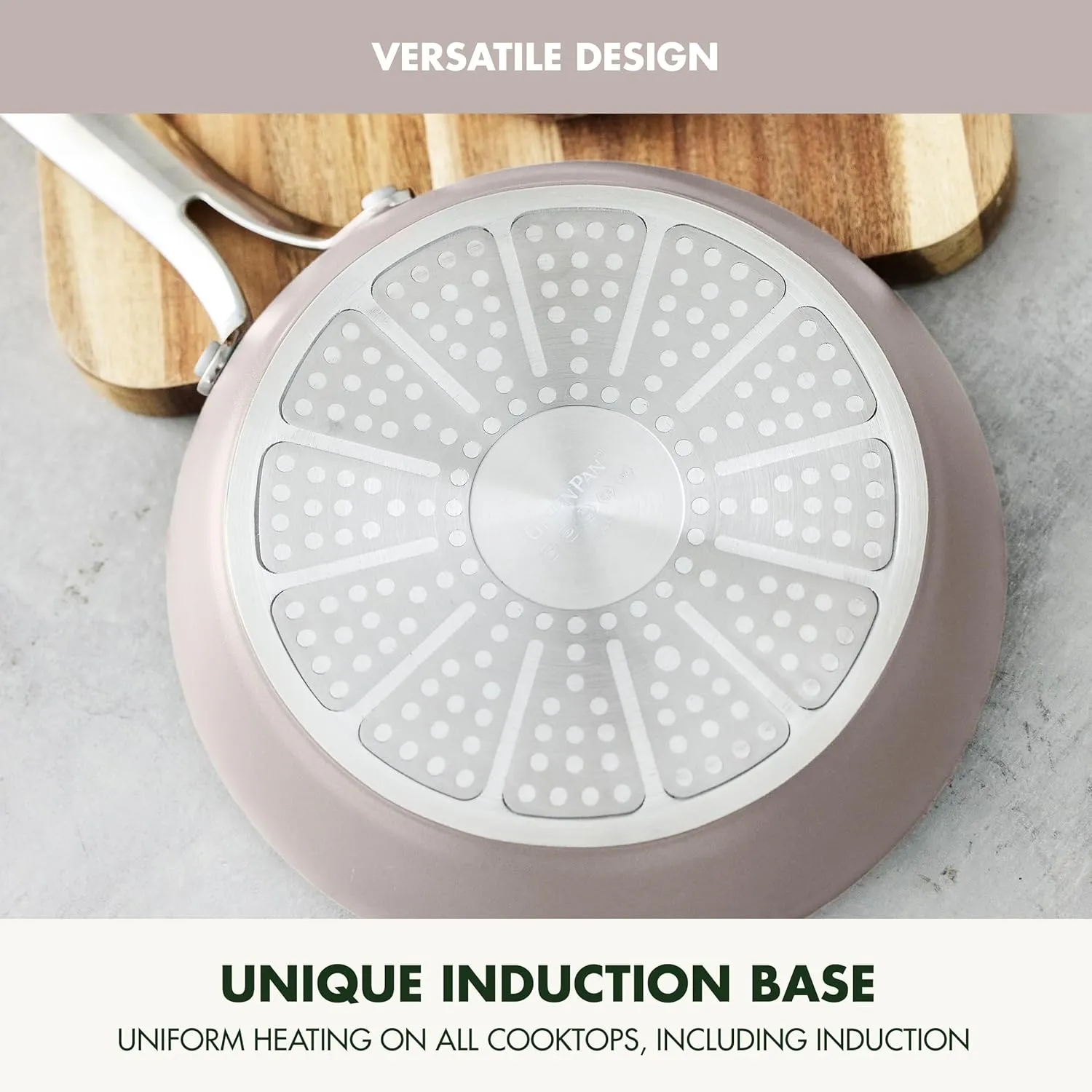 Бренд: GreenPan Материал: алюминий Специальные функции: здоровая керамическая антипригарная, без PFAS Цвет: глина Вместимость: 1900 мл Совместимые устройства: гладкая индукция, газ, электричество Инструкции по уходу за продуктом: можно мыть в посудомоечной машине Максимальная температура: 350 градусов по Фаренгейту Материал ручки: нержавеющая сталь Безопасен для использования в духовке: да Имеет антипригарное покрытие: да Можно мыть в посудомоечной машине: да Форма: круглая