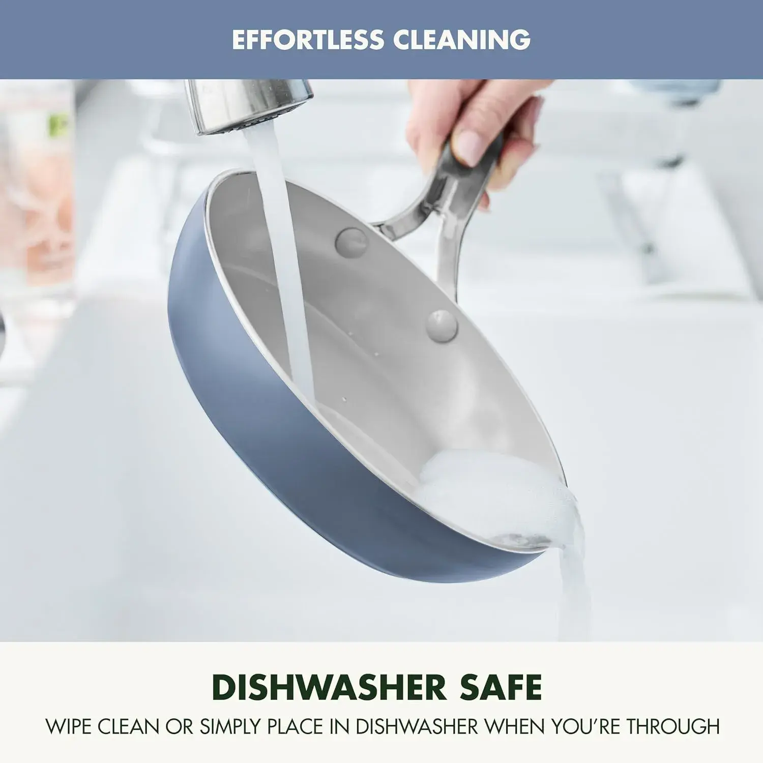 Бренд: GreenPan Материал: здоровая керамическая антипригарная PFAS-free покрытие, алюминиевый корпус, ручки из нержавеющей стали Особенность: здоровая керамическая антипригарная, без PFAS Цвет: океан Вместимость: 1900 мл Совместимые устройства: индукция с гладкой поверхностью, газ, электричество Инструкции по уходу за продуктом: можно мыть в посудомоечной машине Максимальная температура: 350 градусов по Фаренгейту Материал ручки: нержавеющая сталь Можно использовать в духовке: да Имеет антипригарное покрытие: да Можно мыть в посудомоечной машине: да Форма: круглая