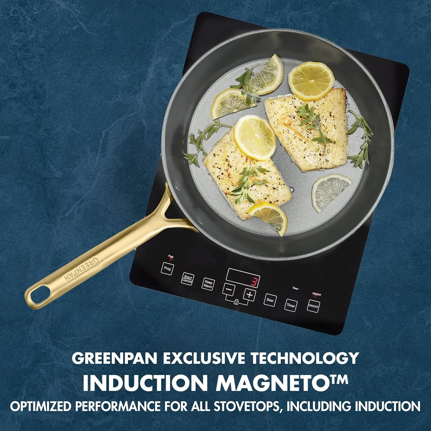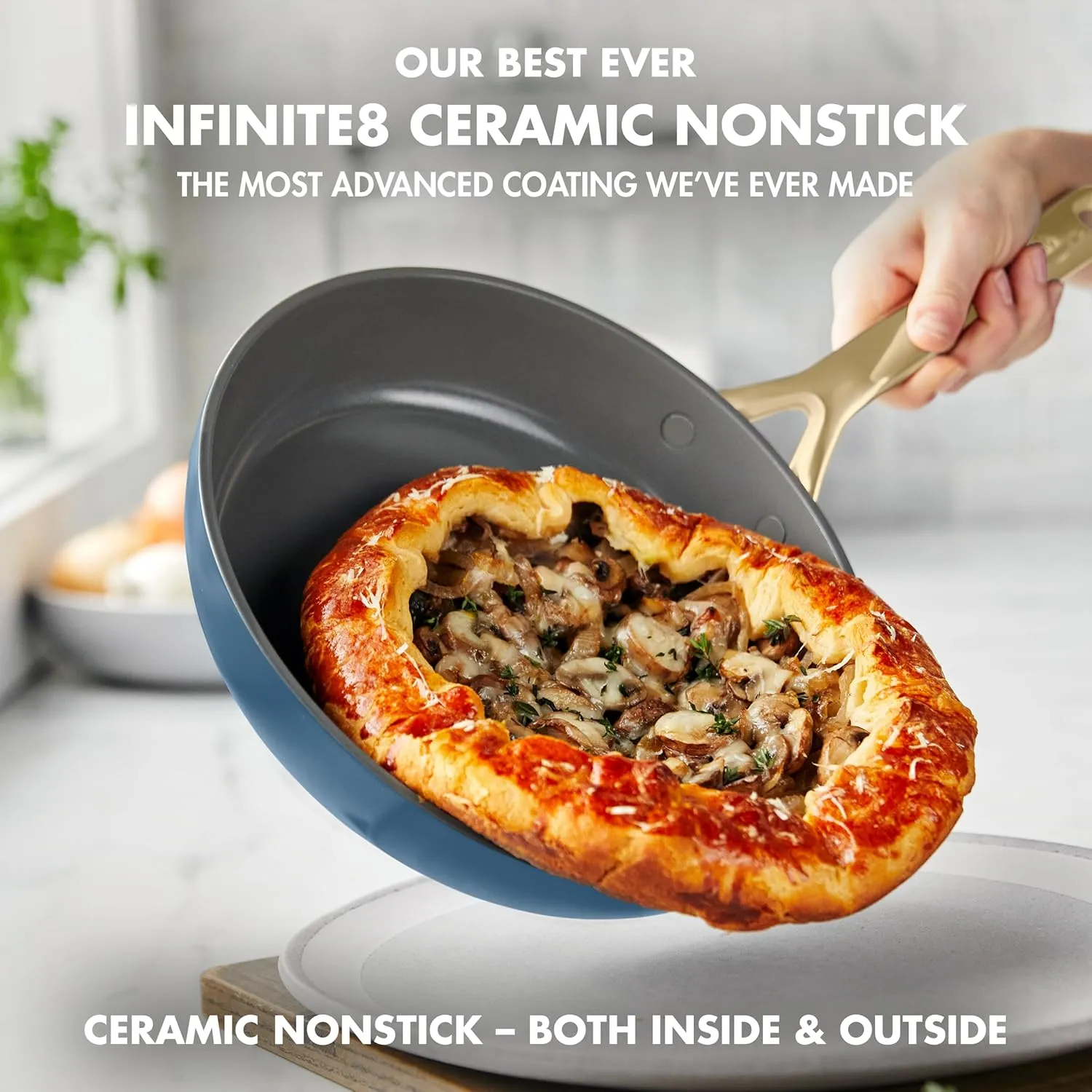 GP5 объединяет 15 лет инноваций, ориентированных на кулинарию, в одной передовой коллекции. Эти чрезвычайно продуманные кастрюли и сковороды находятся в своем собственном классе. Вы можете не заметить интегрированные технологии с первого взгляда, но оцените их, когда начнете готовить. Этот набор предназначен для того, чтобы легко готовить все, от тушеных куриных бедер до простых утренних яиц. Независимо от того, что вы готовите, вы можете использовать меньше масла и получить более плотный контакт с инновационной базой Balance Pro этой сковороды. Все сковороды сгибаются, когда они нагреваются, но ультратолстые сковороды диаметром 5 мм и сковорода для обжаривания из этой коллекции спроектированы так, чтобы сгибаться внутрь, что означает, что масло остается там, где вы его положили, а ваша еда получает максимальный контакт с сковородой. Мы изобрели керамическую антипригарную посуду 15 лет назад, и мы довели ее до совершенства с помощью Infinite8. Это революционное керамическое антипригарное покрытие является самым передовым керамическим антипригарным покрытием, когда-либо произведенным. Оно ультра-прочное, устойчиво к царапинам и включает в себя слои алмазов для необычайного. Продуктивность.