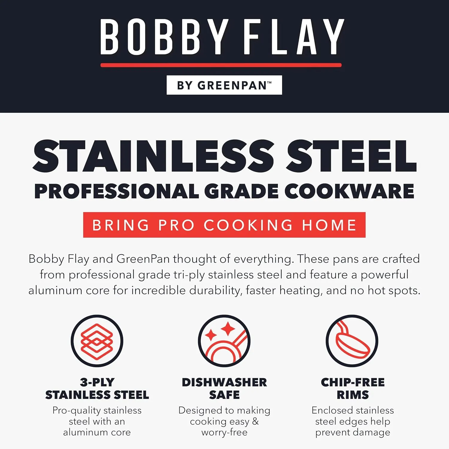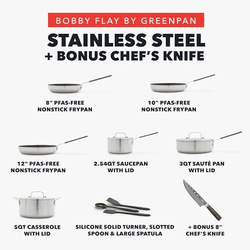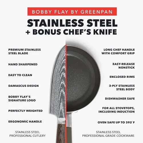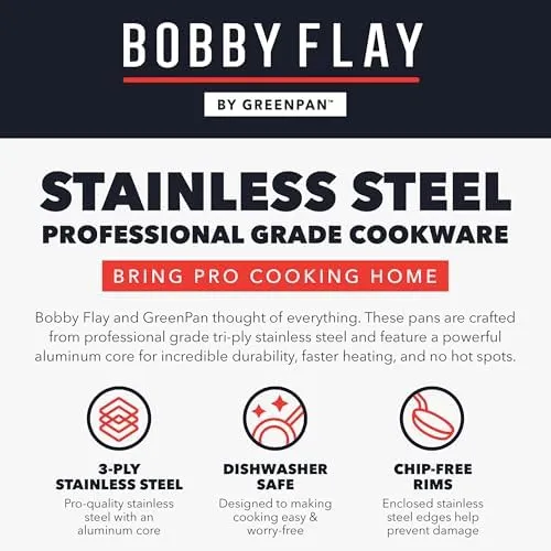 Мировозвестный шеф-повар, телевизионный ведущий, ресторатор и автор Бобби Флей объединился с GreenPan, чтобы принести годы опыта и инновации в кулинарии в эту современную коллекцию. Наполненная продуманными деталями, которые делают приготовление пищи дома проще, эта коллекция предлагает идеальное сочетание обоих миров - некатированные 3-слойные нержавеющие кастрюли и антипригарные сковороды без ПФС от GreenPan. Бобби Флей и GreenPan подумали обо всем. Эти сковороды изготовлены из профессиональной 3-слойной нержавеющей стали и имеют мощное алюминиевое ядро для невероятной прочности, более быстрого нагрева и отсутствия горячих точек. Эта коллекция нержавеющей стали в сочетании является лучшим из обоих миров. Некатированная нержавеющая сталь обеспечивает великолепные блюда, а каждая сковорода отделана уникальным безПФС керамическим антипригарным покрытием от GreenPan, чтобы приготовление пищи было беззаботным. Каждая сковорода наполнена полезными деталями и передовыми кулинарными технологиями GreenPan. Щедрые ручки шефа остаются холодными, чтобы сделать готовку комфортной, так что вы можете сосредоточиться на. Аромат. Кроме того, края без сколов помогают предотвратить сколы и повреждения покрытия на сковородках с антипригарным покрытием без PFAS. Каждая крышка из закаленного стекла позволяет следить за едой во время приготовления, а широкие ручки делают их безопасными и удобными для снятия. Разработанный для использования на любой кухне, этот набор оптимизирован для работы на всех плитах, включая индукционные. Сковородки безопасны для использования в духовке при температуре до 200˚C и пригодны для мытья в посудомоечной машине для легкой очистки.