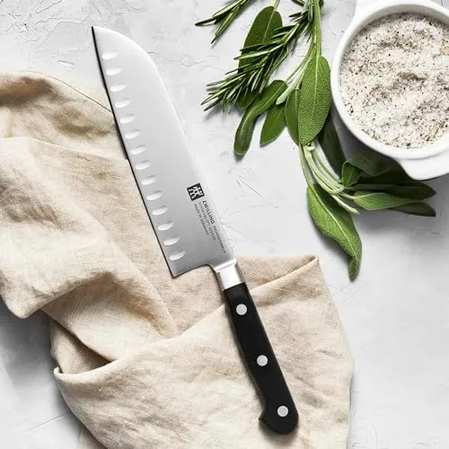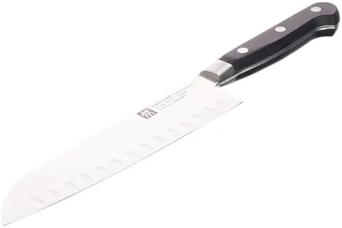 Нож Сантоку - это нож, вдохновленный японским дизайном, с широкой лезвием и чрезвычайно острым режущим краем. Он особенно универсален и может использоваться для приготовления мяса, рыбы и овощей. Хотя он похож на поварской нож, он отличается своим бритвенно-острым лезвием и закругленным концом.