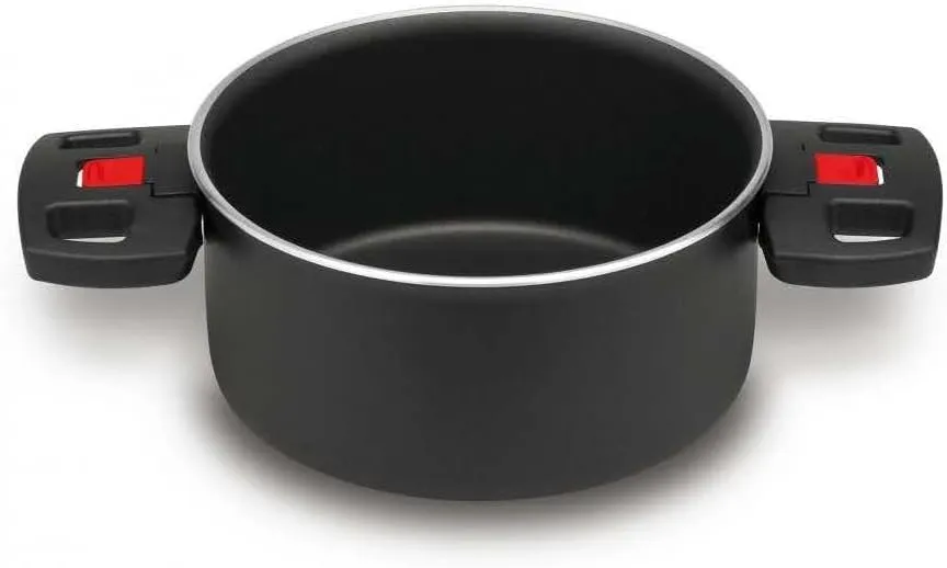 Наше идеальное решение для экономии пространства. Система для практичных кухонь. Идеально для молодой кухни. Преимущества: алюминиевая кастрюля толщиной 2,5 мм с складывающимися ручками для экономии места на кухне и в посудомоечной машине. С разработанным собственным антипригарным покрытием с керамическими частицами KERAVIS, также особенно подходит для кемпинга и автодомов. Подходит для всех типов плит, кроме индукционных.