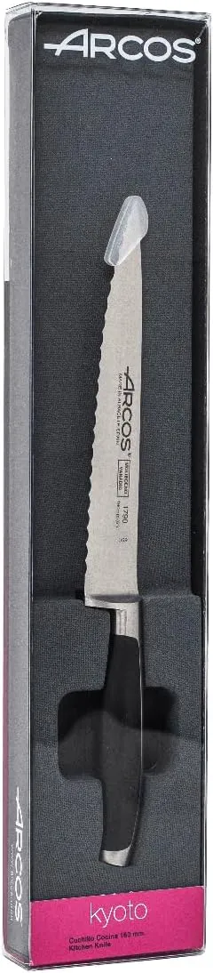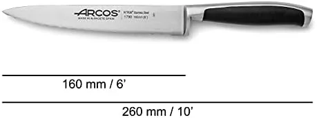 Современное продолжение традиций своего испанского происхождения XVIII века, этот кухонный универсальный нож длиной 16,5 см (160 мм) из линии Arcos Kyoto обладает эргономичным дизайном, минималистичными линиями и превосходной прочностью, дополненной двусторонним лезвием. Прочный рукоятка линии Kyoto иNovel дизайн с черной ручкой, контрастирующий с металлом, делают его элегантным дополнением современных кухонь. Этот многофункциональный нож предназначен для нарезки и порционной нарезки практически любых овощей или фруктов. Линия Arcos Kyoto (см. Изображение больше). Кованые из одного куска закаленной и отпущенной высокоуглеродистой нержавеющей стали Nitrum, ножи серии Arcos Kyoto имеют высокую стойкость к износу, а также устойчивость к высоким и низким температурам. Ножи серии Kyoto удовлетворят как кулинарных профессионалов, так и домашних поваров с исключительно высокой первоначальной остротой с завода, а также превышают промышленный стандарт по удержанию остроты более чем в три раза выше минимального. Измерение. Они имеют мягкую рукоятку из полиоксиметилена (POM), встроенную в ручку. Можно мыть в посудомоечной машине, хотя рекомендуется ручная мойка. Нержавеющая сталь Arcos Nitrum Nitrum - это формула нержавеющей стали, обогащенная азотом, которая встречается исключительно в ножах Arcos. С нержавеющей сталью Nitrum ваш нож Arcos будет обладать улучшенной жесткостью для более долгого сохранения остроты, улучшенной микроструктурой для более высокой устойчивости к коррозии и исключительной долговечностью лезвия для более длительных промежутков между заточками. Процесс производства Nitrum не оказывает негативного воздействия на воздух, воду или почву. Как правильно заточить нож Arcos Arcos рекомендует регулярно использовать точильный стержень, чтобы держать лезвие вашего ножа в идеальной остроте. Положите лезвие ножа на стержень под углом 20 градусов. Держите руку, держащую стержень, стабильно и слегка проведите лезвием по стержню, удерживая угол в 20 градусов. Каждой стороне ножа следует уделить равное внимание. Количество проходов (около 20). Заточите другую сторону лезвия, как и прежде, на этот раз используя другую сторону точильного стержня. И не забывайте всегда защищать свои пальцы. См. Большое изображение. Советы по использованию и уходу Мойте ножи сразу после использования с мягким мылом. Избегайте длительного контакта с остатками пищи. Не используйте отбеливатель, соду или моющие средства, содержащие хлор или хлориды, так как они ржавеют сталь и могут привести к потере блеска. Избегайте натирать ножи абразивными средствами, жесткими тканями, а также металлическими или синтетическими очистителями.Если вы используете посудомоечную машину, помещайте ножи лезвиями вверх и в отдельных контейнерах от остальной столовой посуды, чтобы избежать царапин. Избегайте оставлять ножи погруженными в воду на длительное время, особенно в жесткой или соленой воде, которая может повредить металлы. Сразу высушите мягкой тканью. Не рекомендуется оставлять ножи сушиться в посудомоечной машине. О компании Arcos Arcos - ведущий испанский производитель ножей и один из лучшими производителями ножей и столовых приборов в мире. В 1745 году Дон Хуан де Аркос начал ручную обработку первых ножей и ножниц, отмеченных брендом Arcos, и многие из этих изделий выставлены в Национальном музее археоло
