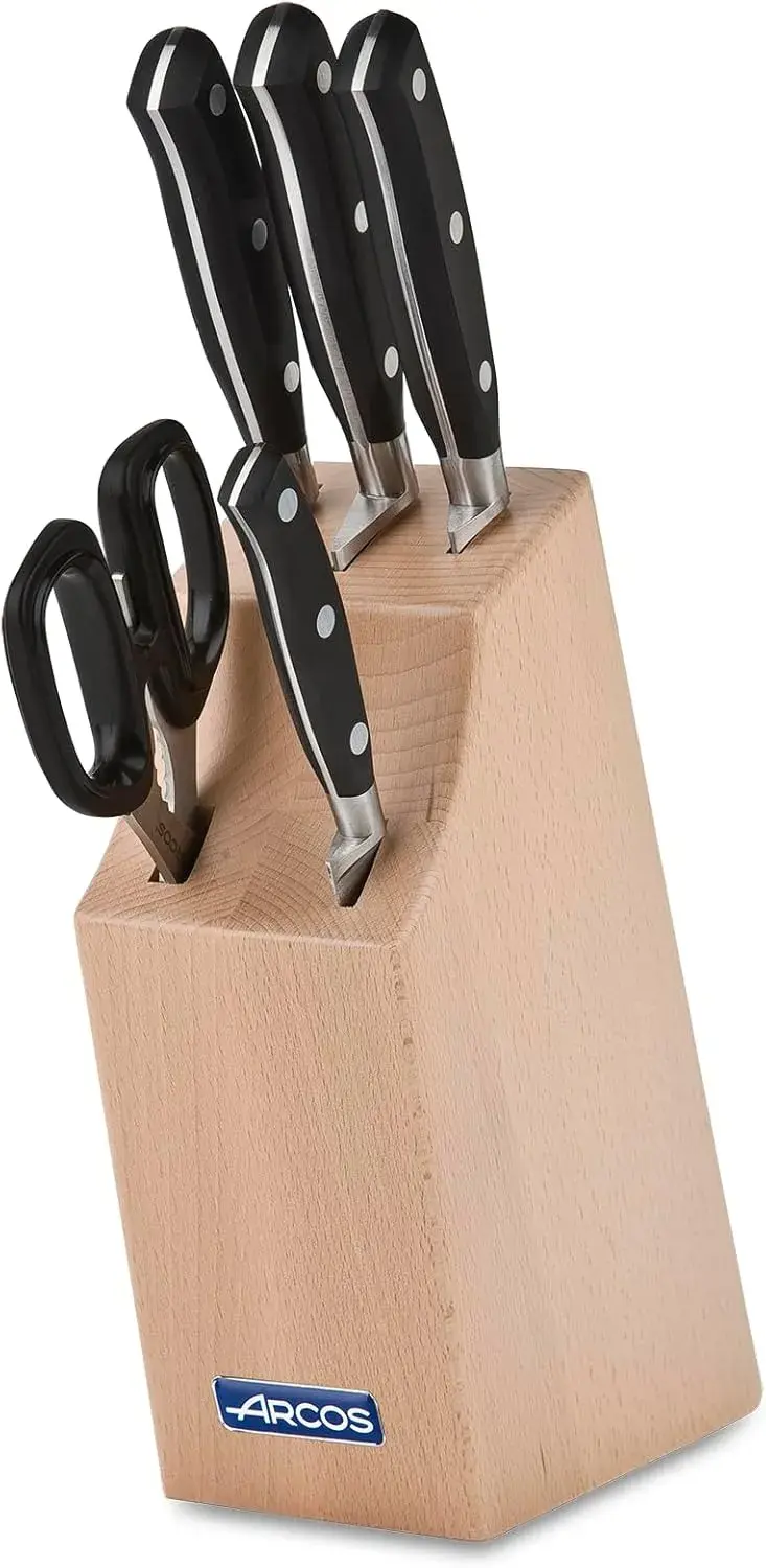 Этот кухонный набор Riviera из 4 предметов с деревянным блоком от Arcos включает в себя 4 ножа Riviera и качественные кухонные ножницы. Кухонный набор Riviera включает все необходимые принадлежности, чтобы облегчить приготовление ваших любимых блюд. Он имеет деревянный блок, который может вмещать 4 ножа Riviera, и комплекта кухонных ножниц. Кроме того, он имеет дизайн цвета дерева, что придаст деревенский и элегантный вид любой кухне.