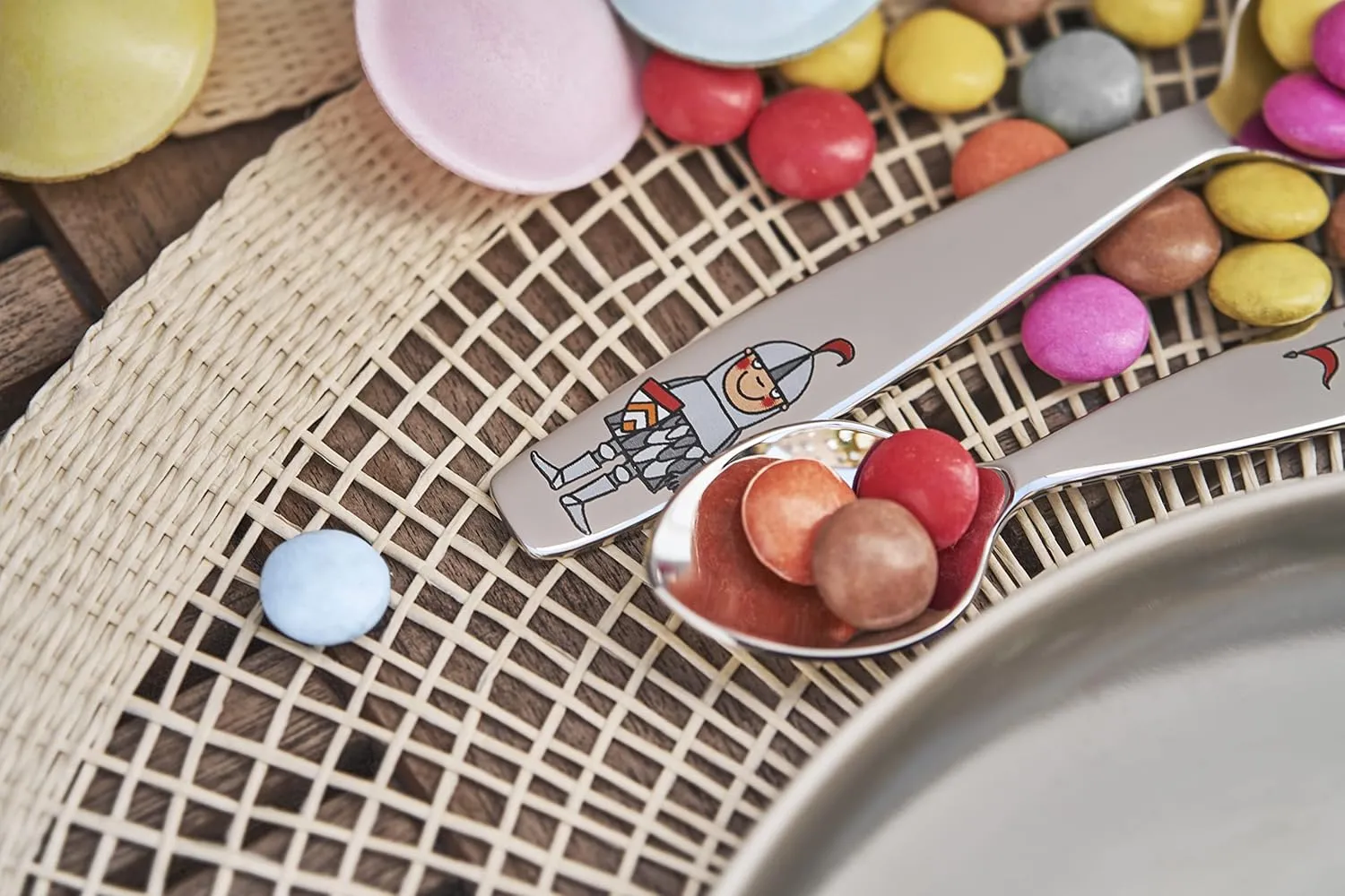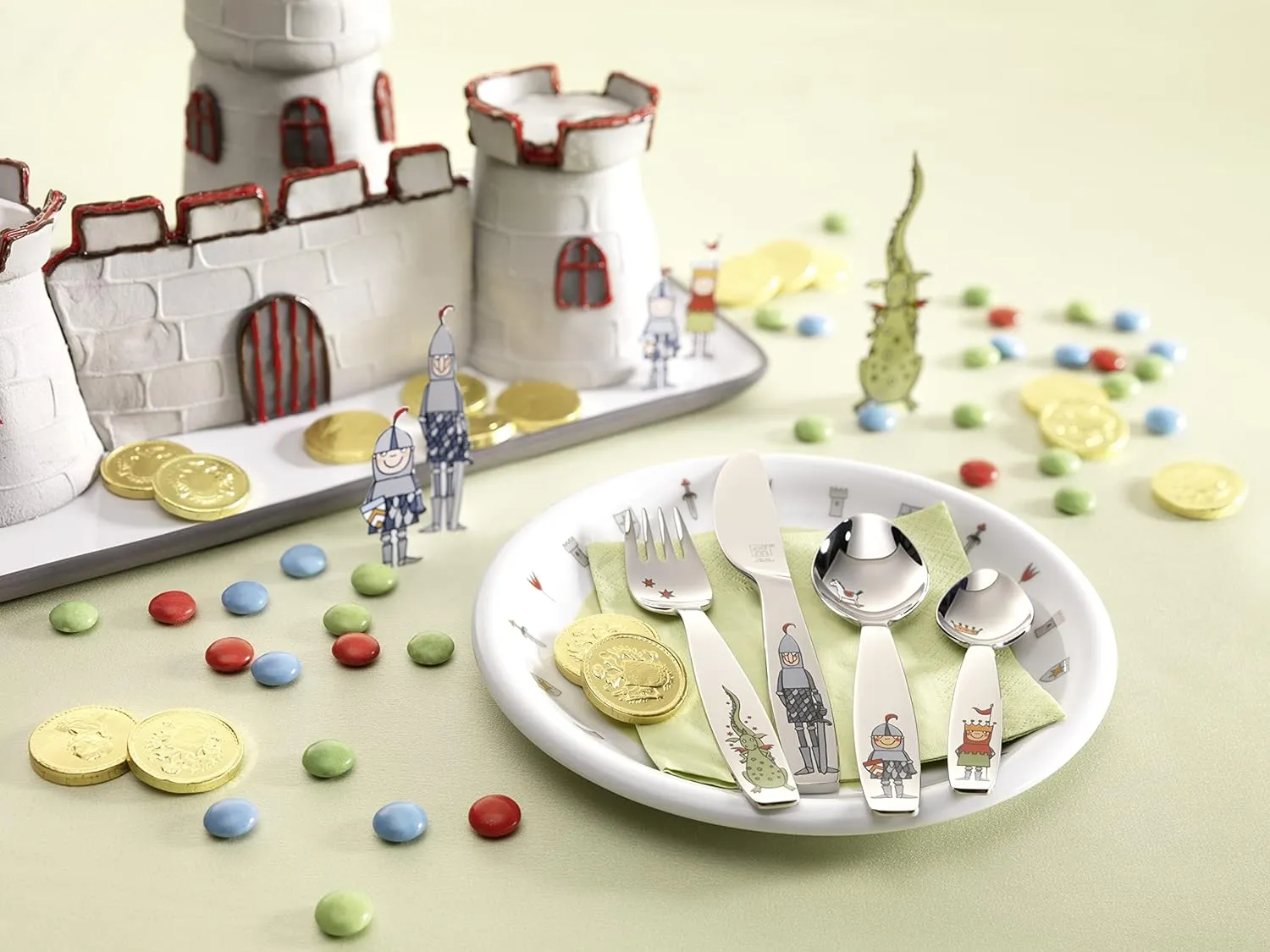 Правильному поведению за столом нужно учиться. С забавными дизайнами и столовыми приборами, специально созданными для детских рук, молодые годы могут игриво изучать правила поведения за столом. На замке рыцаря Экберта встречаются как его друзья, так и великан-дракон, которые приключаются на тарелках и чашках.