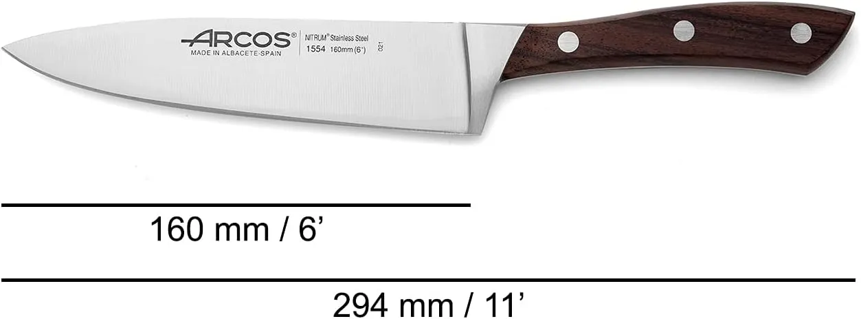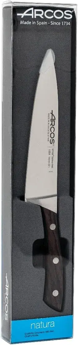 Нож повара из серии Arcos Natura длиной 160 мм используется для различных задач по подготовке пищи. Он очень эффективен для очистки, нарезки и измельчения овощей. Он разработан для работы как с твердыми, так и с мягкими продуктами, что делает его одним из самых часто используемых ножей на кухне. У этого ножа широкое и острое лезвие, что облегчает его использование как для профессиональных, так и для любительских поваров.