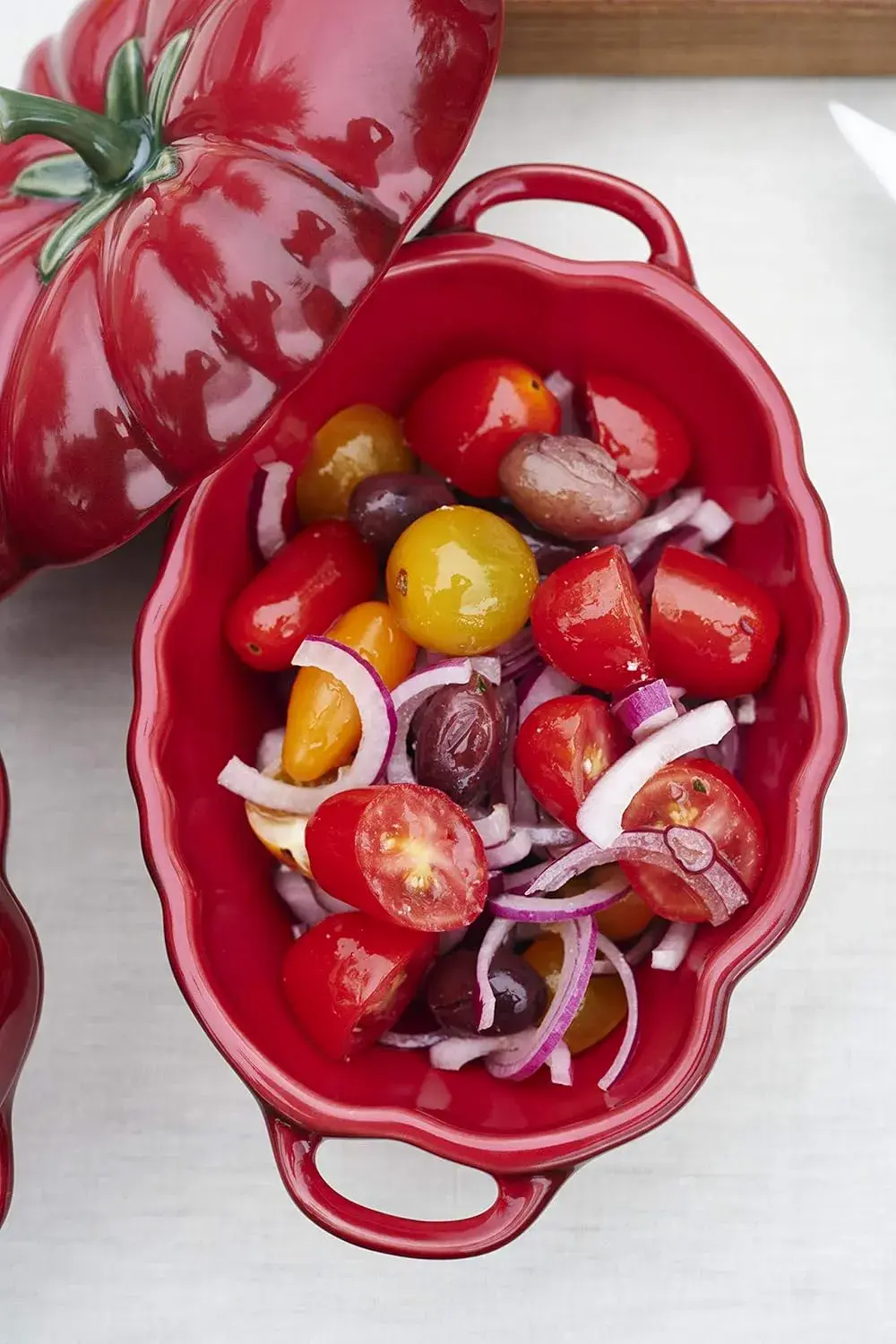 Элегантная кокотница в форме помидора от французской компании Staub из серии Ceramic by Staub подарит вам особые моменты в подаче и позволит насладиться лучшими блюдами. Кокотница изготовлена из традиционной обожженной керамики в форме помидора
