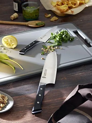 С хлебным ножом из серии Zwilling Diplôme вы можете нарезать хлеб и булочки без усилий. Это связано с тем, что 24-сантиметровое лезвие ножа Zwilling изготовлено из стали FC61. Этот специальный материал характеризуется своей особой твердостью. Хлебный нож имеет зубчатое лезвие, что делает нарезку приятной. Кроме того, благодаря эргономически сформированным ручкам с прочной трехрежневой конструкцией ножи серии Zwilling Diplôme особенно удобно лежат в руке. Даже при длительной работе, например, когда нужно разрезать много булочек для приема или садовой вечеринки, руки и запястья не устают. Более того, к разработке серии Zwilling Diplôme была привлечена кулинарная школа "Le Cordon Bleu", где обучают поваров нового поколения. Таким образом, эта серия ножей также удовлетворяет самым высоким требованиям профессионалов.Zwilling использует высококачественный пластик для ручки хлебного ножа. Рукоятка ножа идеально соединена с лезвием, и поэтому нет полостей, где может скапливаться грязь. Три заклепки обеспечивают надежное схватывание. С этим красивым и идеально разработанным ножом, у которого длина лезвия составляет 24 см, сделанным из стали FC61, вы даже можете нарезать хлеб на крайне тонкие ломтики. Страна производства: япония Материал: FC61 Тип рукоятки: с открытым хвостовиком