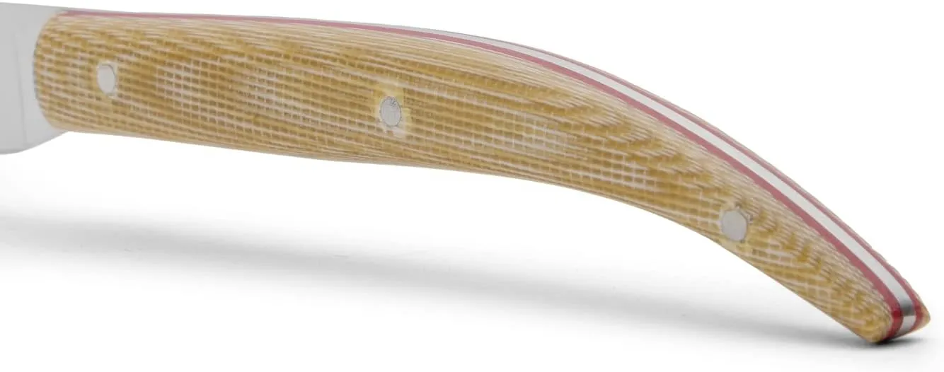 Отличительный дизайн: имеет лезвие с опущенной точкой, гладкий край и классическую рукоятку складного ножа, что гарантирует его выделение среди любых столовых приборов.