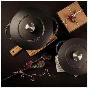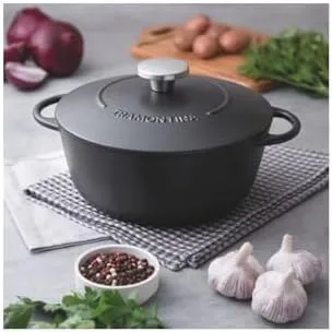 Это коллекция посуды из эмалированного чугуна, обладающая множеством функций и стильным, элегантным внешним видом. Часть коллекции из шести предметов, это кастрюля - доступная в размерах 24 см или 28 см, подходит для всех типов плит, включая индукционные, газовые, электрические и стеклокерамические, и устойчива к запеканию в духовке. Чугунная конструкция обеспечивает быстрое и легкое приготовление пищи, равномерно и быстро распределяя тепло по всей кастрюле. Она имеет черное эмалевое покрытие внутри и снаружи, добавляя особый, деревенский штрих к вашей кухне. Щеточный нержавеющий стальной переключатель на крышке добавляет стильный элемент, а также обеспечивает безопасный и удобный захват. Уход и использование: перед первым использованием промойте вашу чугунную посуду вручную с небольшим количеством мягкого моющего средства. Быстро и тщательно высушите бесворсовой тканью или бумажным полотенцем. Разогрейте вашу посуду. Чтобы обеспечить равномерный нагрев, постепенно разогревайте кастрюлю на плите подобного диаметра. Поскольку чугун удерживает тепло, нет необходимости использовать слишком высокую температуру. Установите выше среднего. Это помогает предотвратить прилипание еды. Не забудьте использовать жаропрочную рукавицу! Как только ваша сковорода раскалится, добавьте очень тонкий слой растительного масла (можно использовать любые кулинарные масла и жиры для запекания чугуна, но мы рекомендуем растительное, кокосовое или рапсовое масло) на поверхность вашей сковороды. Используйте бумажное полотенце, чтобы протереть поверхность, пока на ней не останется следов масла. Наносите масло после каждого использования, чтобы не только защитить запекание чугуна, но и улучшить финиш для десятилетий готовки. С каждым использованием вы увидите, что производительность становится все лучше и лучше. Что означает запекание? Запекание формирует естественную, легко освобождающую поверхность для готовки и помогает предотвратить ржавчину вашей сковороды. Хорошо запеченная чугунная сковорода может прослужить поколениями. При использовании на гладких конфорках, таких как индукционные или стеклокерамические, поднимайте сковороду, чтобы избежать царапин на варочной панели. Используйте только силиконовые, нейлоновые или деревянные инструменты для перемешивания еды.