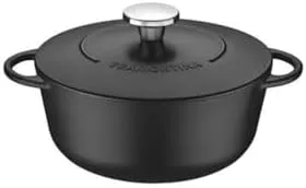 БОЛЕЕ ЭФФЕКТИВНО: чугунная конструкция гарантирует быстрое и легкое приготовление пищи, так как равномерно и быстро распределяет тепло по всей кастрюле для эффективного приготовления.