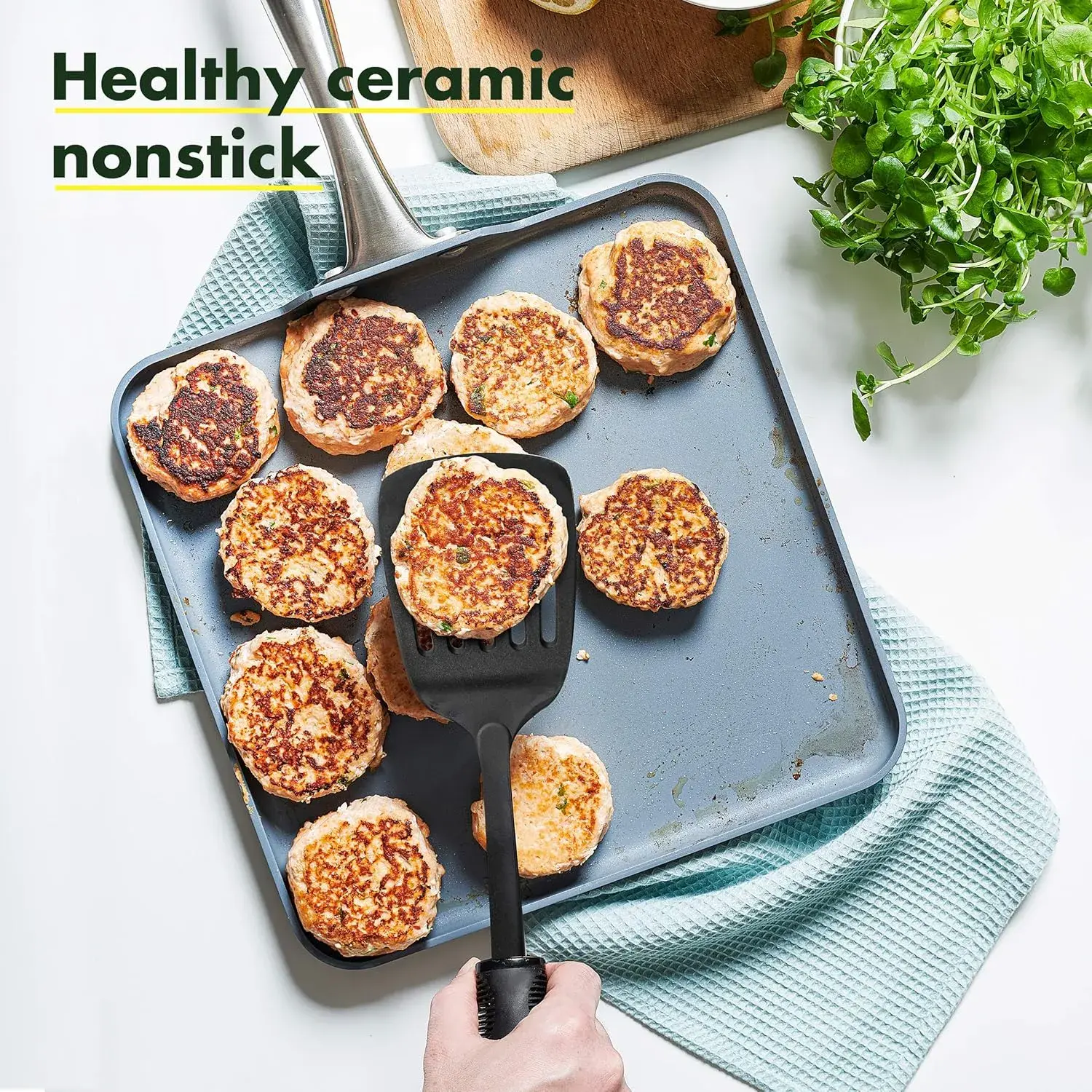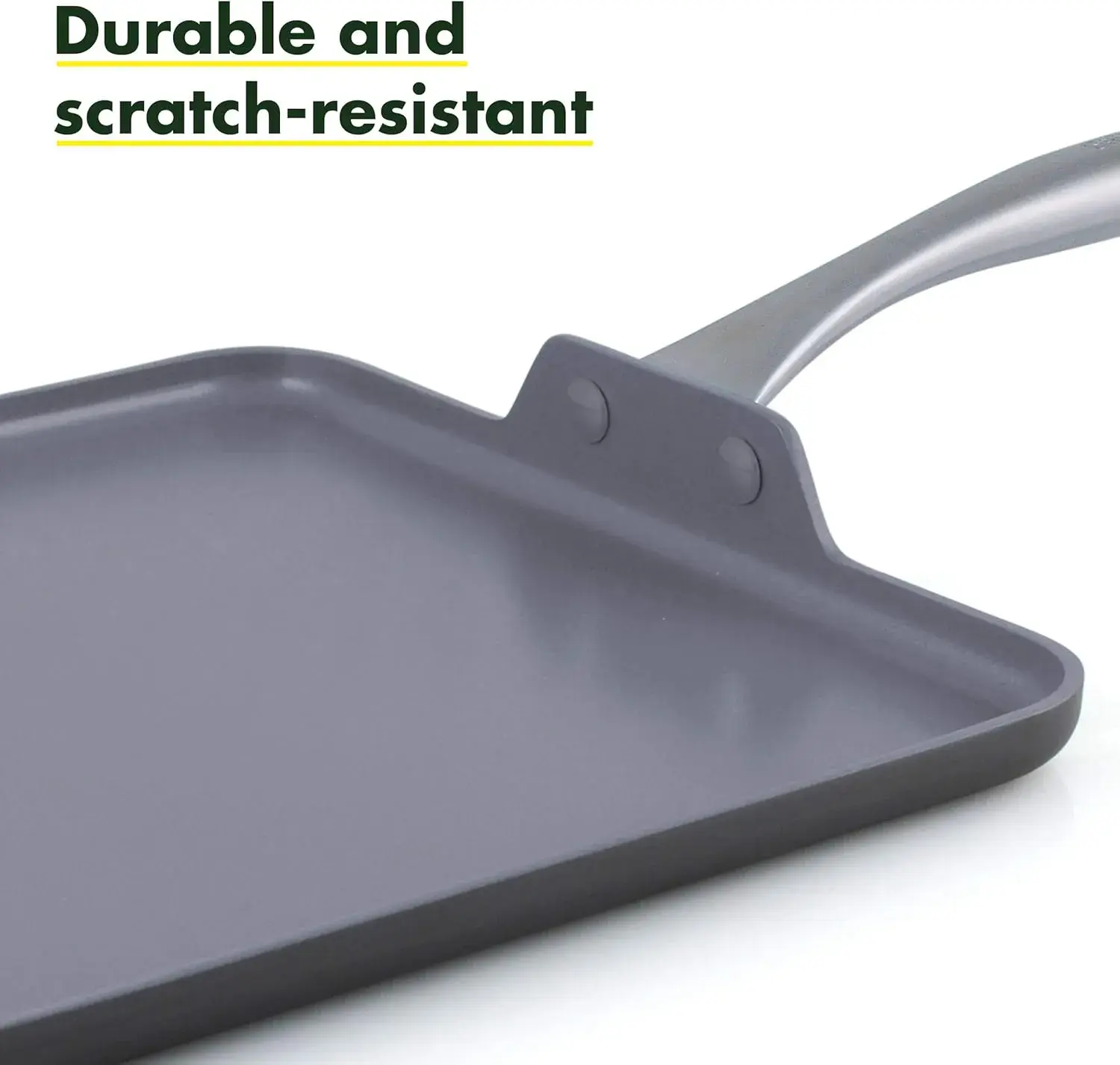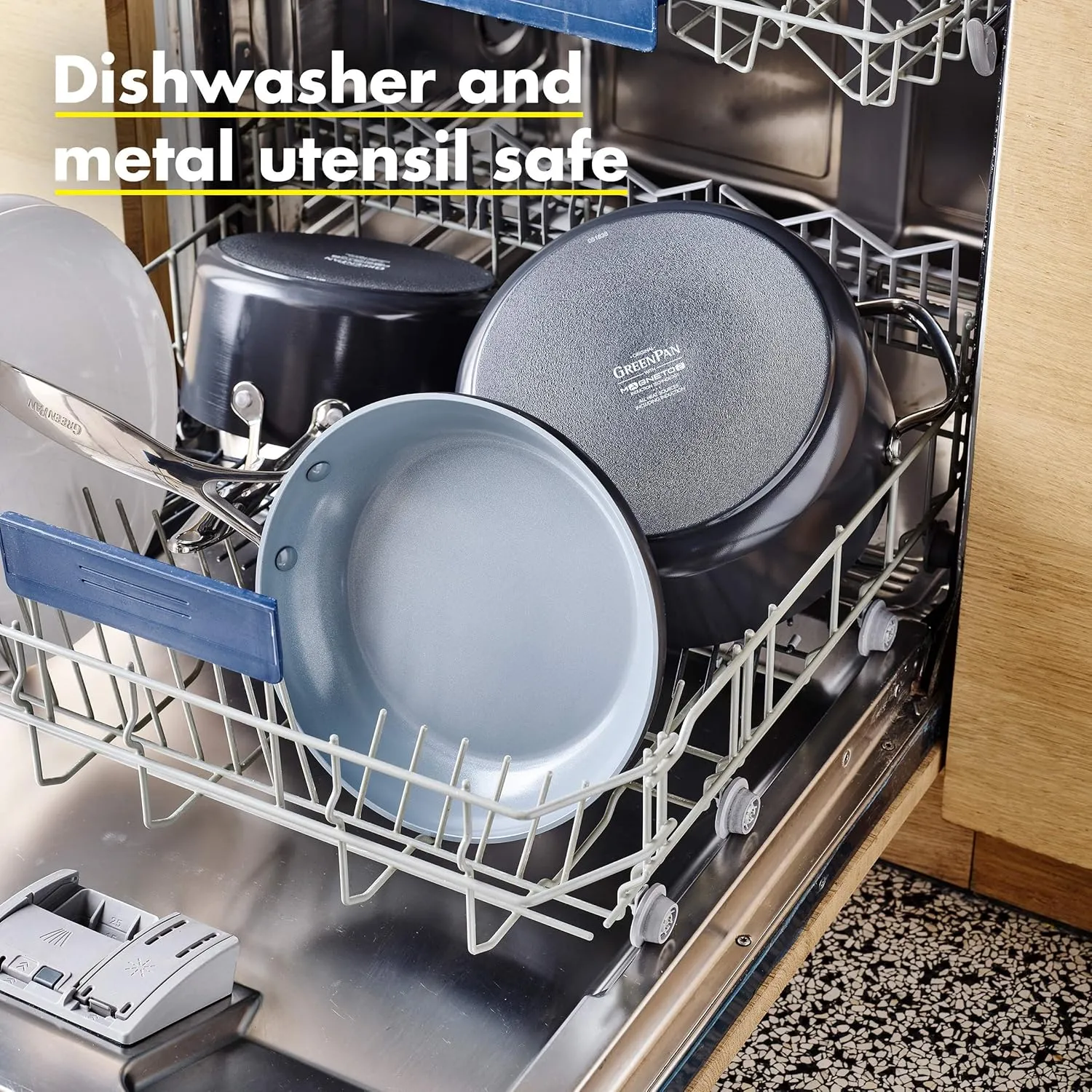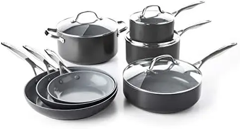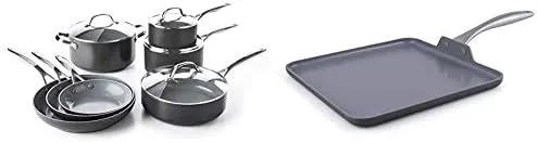 GreenPan Valencia Pro жесткий анодированный индукционный безопасный здоровый керамический не прилипает, набор посуды для приготовления пищи, 11 предметов, серый.Valencia Pro объединяет более десятка инноваций в одной невероятной коллекции. Созданная для долговечности, эта коллекция изготовлена из прочного анодированного алюминия для дополнительной прочности и устойчивости к царапинам. Каждая сковорода оснащена прочным магнитным основанием для превосходной индукционной эффективности, что позволяет вам обжаривать, жарить и запекать без потери тепла на любых конфорках, включая индукционные. Идеально подходит для яиц, бекона и блинов, эта универсальная сковорода упрощает процесс приготовления и уборки благодаря фирменному антипригарному покрытию Thermolon на основе керамики от GreenPan. Изготовленная без PFAS, PFOA, свинца или кадмия, это антипригарное покрытие никогда не будет выделять токсичные пары, даже если его случайно перегреть. Сковорода выполнена из анодированного алюминия, что делает ее легкой, устойчивой к царапинам и идеальной для повседневного использования. Ручка из заклепанного нержавеющего стали имеет контурную форму для полного контроля и комфорта. Не рекомендуется для духовок и грилей с температурой выше 600°F. Ручная стирка только.
