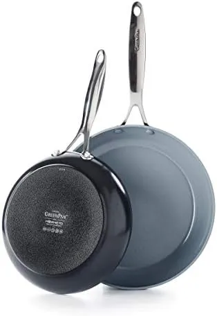 GreenPan Valencia Pro жаропрочная анодированная керамическая сковорода с антипригарным покрытием, 25 см и 30 см набор, серый.Valencia Pro объединяет более десятилетия инноваций в одной невероятной коллекции. Разработанный для долговечности, этот набор сковородок изготовлен из прочного анодированного алюминия для дополнительной прочности и устойчивости к царапинам. Этот набор из 25 см и 30 см включает в себя прочные магнитные основания для превосходной индукционной эффективности, так что вы можете подрумянивать, жарить и зажаривать без потерь тепла на любой плитке, включая индукционную. Каждая сковорода оснащена нашей керамической антипригарной поверхностью Thermolon Minerals Pro, алмазным покрытием, которое безопасно для металлических принадлежностей и разработано для интенсивного использования, обеспечивая равномерное нагревание, легкое отделение и простоту очистки. Обе сковороды имеют ручки из нержавеющей стали, которые позволяют вам легко переходить от плиты к духовке, а конструкция, подходящая для посудомоечной машины, делает уборку больших беспорядков беззаботной.GreenPan Paris 20 см сковорода с керамическим антипригарным покрытием, серый