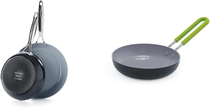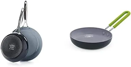 GreenPan Valencia Pro жаропрочная анодированная индукционная безопасная здорова керамическая антипригарная посуда, набор из 20 см и 25 см, серый.Valencia Pro объединяет более десятилетия инноваций в одной невероятной коллекции. Разработанный для длительного использования, этот набор сковородок изготовлен из укрепленного анодированного алюминия для дополнительной прочности и устойчивости к царапинам. Этот комбинация сковородок размером 20 см и 25 см имеет прочные базы Magneto для превосходной индукционной эффективности, что позволяет вам жарить, обжаривать и запечатывать без потерь тепла на любой плите, включая индукционные. Сковорода имеет наше керамическое антипригарное покрытие Thermolon Minerals Pro, которое содержит алмазы и безопасно для металлических кухонных принадлежностей, разработанное для интенсивного использования, обеспечивая равномерный прогрев, легкое выделение пищи и простоту чистки. Обе сковороды оснащены ручкой из нержавеющей стали, что позволяет легко переходить от плиты к духовке, а конструкция, подходящая для посудомоечной машины, делает уборку больших беспорядков без стресса.GreenPan Mini здоровая керамическая антипригарная посуда, круглая сковорода для яиц, 13 см, серый.