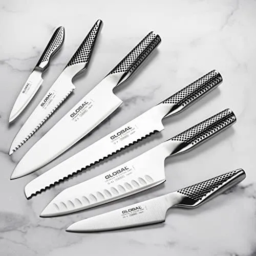 Глобальные ножи содержат два инновационных аспекта: лезвие и балансировку. Самая важная деталь любого ножа - это его лезвие, и лезвие Global является его настоящим знаком отличия. Ножи Global заточены под острым углом и имеют крутой профиль, при этом устойчивы к ржавчине, пятнам и коррозии. Прямое лезвие позволяет получить значительно более острый нож, который дольше остается острым. Лезвие ножа Global настолько велико и заметно, что его легко увидеть невооруженным глазом, и оно выступает на четверть дюйма или более от кончика ножа. С момента своего скромного начала Global превратился в один из самых успешных брендов профессиональных кухонных ножей в мире. Все еще вручную изготовляемые на фабрике Йошикин в Ниигате, япония, ножи Global производятся по чрезвычайно высоким и строгим стандартам. За эти годы Global получил множество похвал и многочисленные награды. Тысячу лет назад японские кузнецы разработали высокое искусство производства мечей. Предоставить крепкие, острые лезвия для самураев, боевой касты, внушающей страх. Как и самурайские мечи до них, каждый нож тщательно отбалансирован, чтобы обеспечить идеальное равновесие в руке. Глобальные ножи были вручную изготовлены в Японии, используя те же традиции и разработаны с использованием лучших доступных материалов.