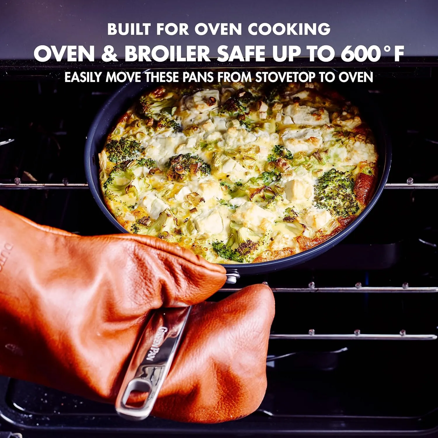 Антипригарное покрытие Thermolon, безопасное для металлических принадлежностей, дополнительно укреплено алмазами для дополнительной прочности и легкости в использовании. Изготовлено без ПФАС, пФОА, свинца или кадмия;наше антипригарное покрытие никогда не выделяет токсичные пары, даже в случае случайного перегрева, так что вы можете сосредоточиться на приготовлении пищи. Края без капель позволяют легко наливать, а полированные нержавеющие стальные ручки обеспечивают надежный захват. Можно мыть в посудомоечной машине. Можно использовать в духовке до 600°F.