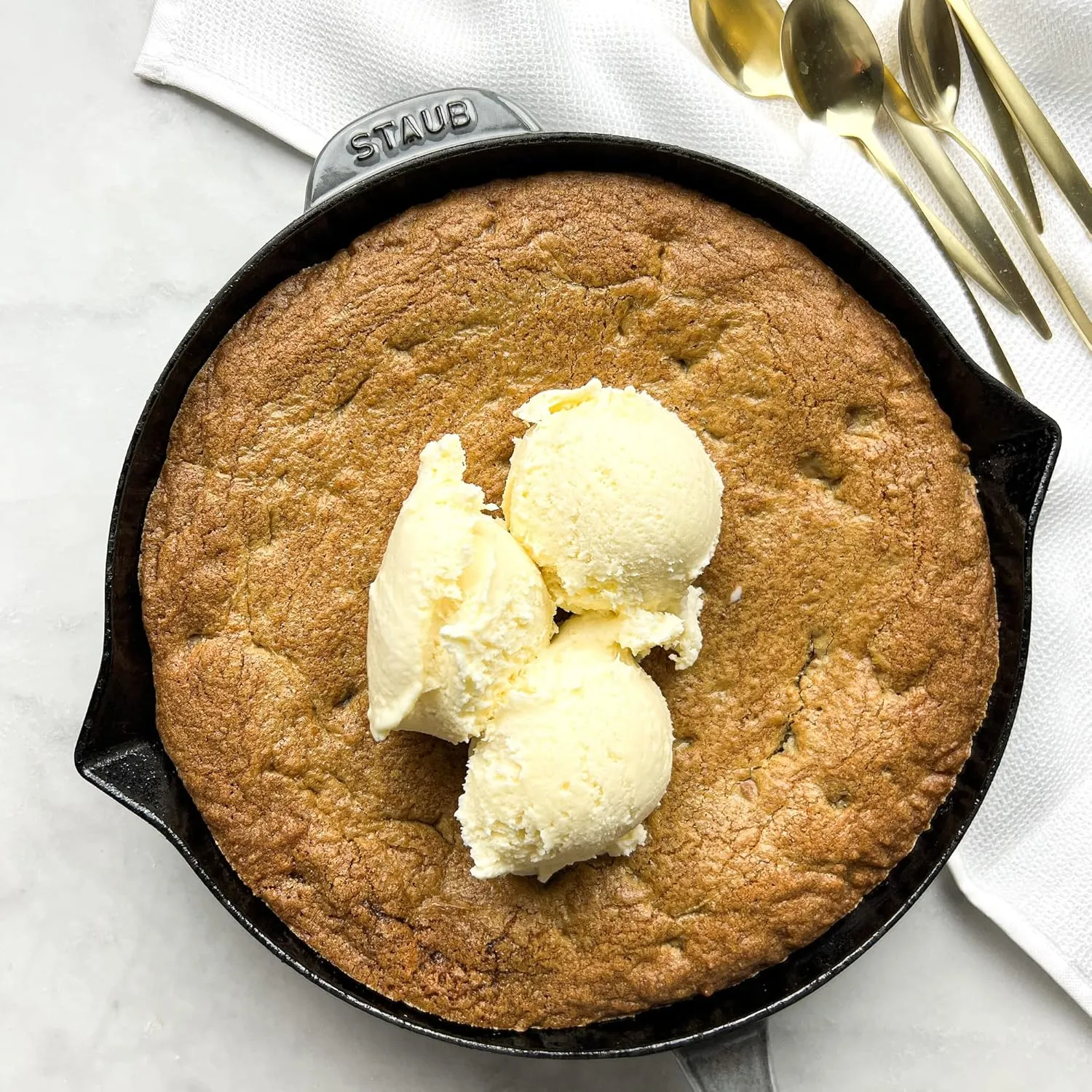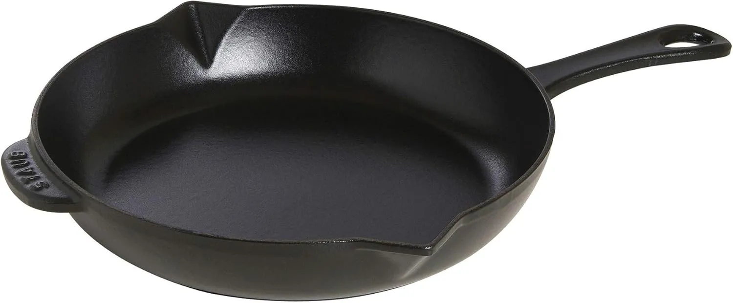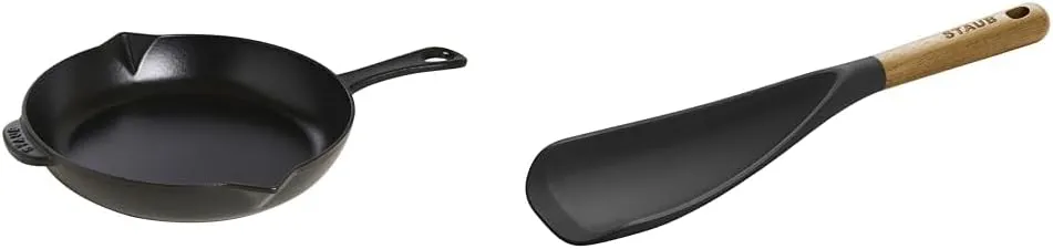 Сковороды от Staub изготавливаются из проверенного материала чугуна, который дополнительно покрывается эмалью. Поверхность прочная и легко чистится, как раз подходит для частого использования на кухне. Благодаря эффективному аккумулированию тепла обжаривание работает так же хорошо, как и медленное, стабильное приготовление. Прежде всего, равномерное выделение тепла обеспечивает бережное и здоровое приготовление пищи. Таким образом, ароматы и питательные вещества сохраняются особенно хорошо. Сковорода имеет диаметр 26 см. Она имеет чугунную ручку, поэтому сковороду можно использовать не только на любой плите, но и в духовке. Два носика используются для отвода лишнего жира или для расстановки соусов. Чугун имеет матовую черную эмаль, которая обладает вкусовыми свойствами. Они даже усиливаются при частом использовании. Поверхность сковороды-гриль прочная и чрезвычайно проста в уходе. Благодаря хорошему удержанию тепла чугуном пища остается теплой в течение длительного времени, так что вы можете легко подать ее в со вкусом оформленной сковороде на обеденном столе. Сковорода подходит для использования на всех типах плит, в том числе и на индукционных. Вы также можете без лишних слов поставить противень в духовку, например, аккуратно продолжить приготовление ранее обжаренного мяса. С помощью сковороды от Staub вы можете создавать вкусные блюда для жарки и вкусные соусы, которыми можно побаловать своих гостей.