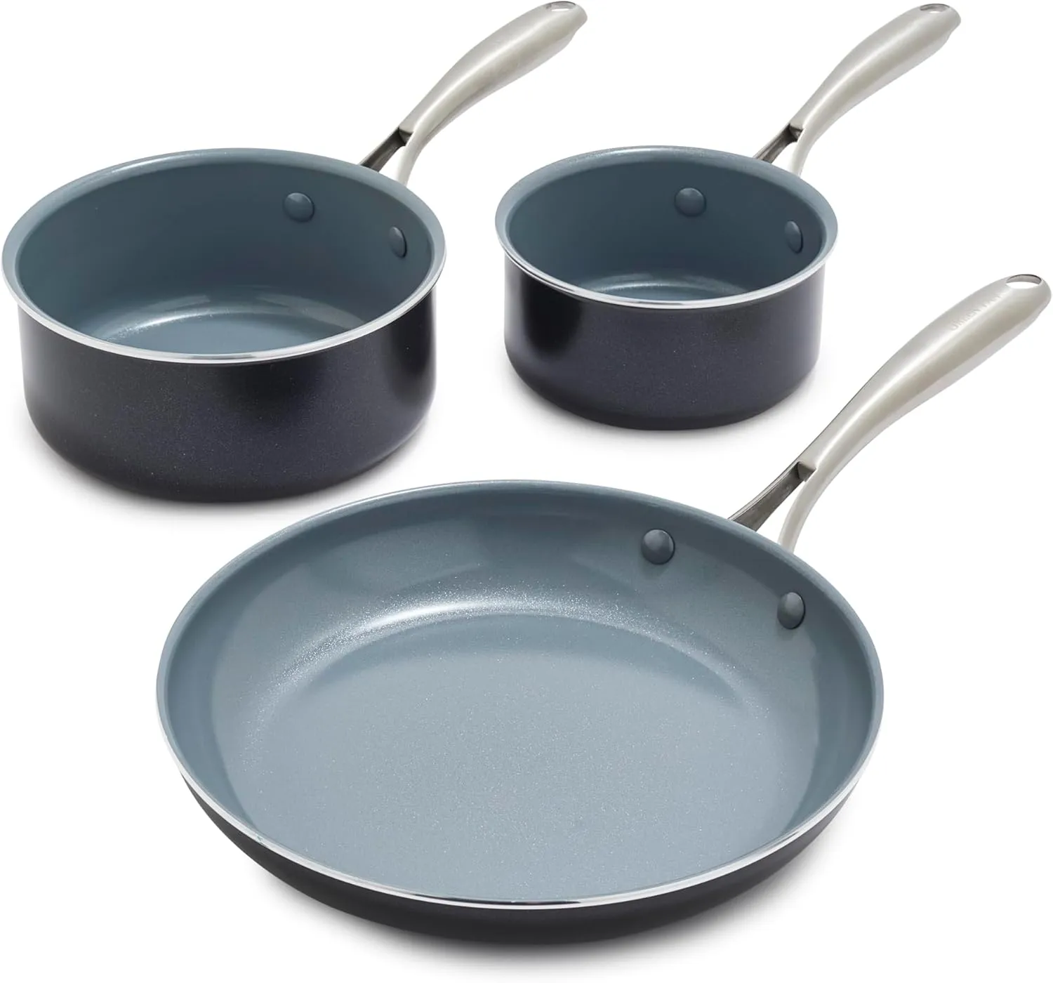 Материал: алюминий Цвет: черный и серый Бренд: GreenPan Размер: набор посуды из 3 предметов Материал ручки: нержавеющая сталь Можно мыть в посудомоечной машине: да Безопасно для материала: без кадмия, без свинца, без PFAS, без PFOA Включенные компоненты: не липкая сковорода 25 см, кастрюля на 1900 мл Можно использовать в духовке: да Объем товара: 3800 мл С крышкой: нет Производитель: GreenPan Совместимость с принадлежностями: да Особая функция: здоровое керамическое не липкое покрытие, не липкая поверхность с алмазными вкраплениями, прочная алюминиевая конструкция.