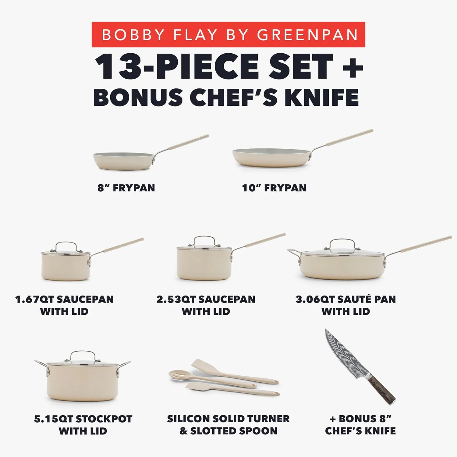Набор посуды GreenPan x Bobby Flay, 13 предметов, кремовый