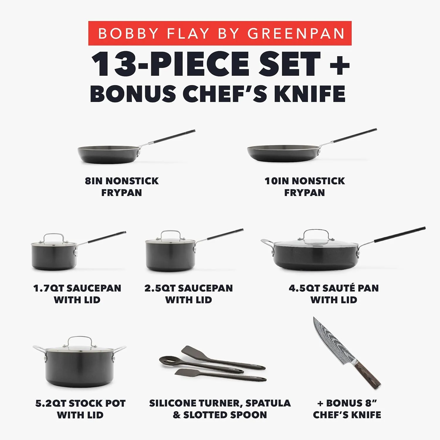Набор посуды GreenPan x Bobby Flay, 13 предметов, черный