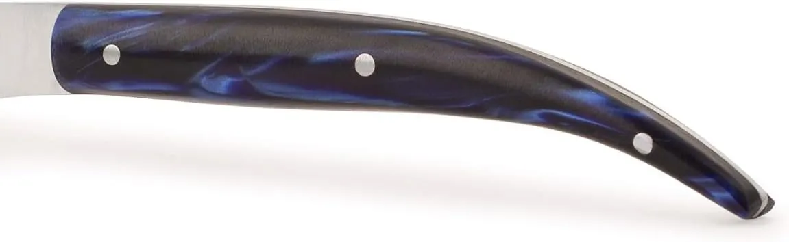 Авангардный стиль: созданные, чтобы завораживать своими смелыми синими рукоятками, эти ножи привносят современную и утонченную суть в вашу обеденную обстановку, выделяя их среди традиционных столовых приборов.