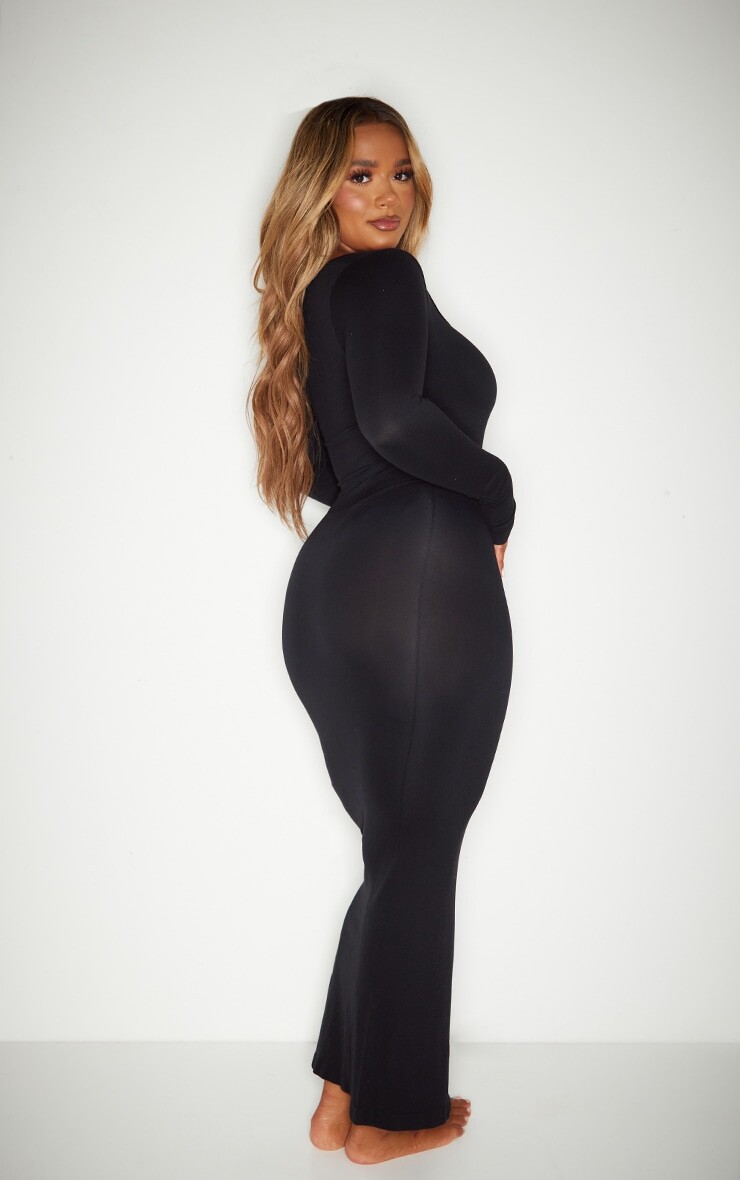 У каждой куклы должно быть в гардеробе основное черное платье, и вы действительно не ошибетесь, выбрав это черное эластичное бесшовное платье макси с длинными рукавами. Представленная вам модель из эластичного бесшовного материала черного оттенка с длинными рукавами и облегающим кроем, чего еще можно желать? Это платье по фигуре выглядит очень шикарно и идеально подходит для наряда, соответствующего вашим планам на выходные. Просто добавьте туфли на каблуках и эффектные золотые аксессуары, чтобы создать безупречный образ.