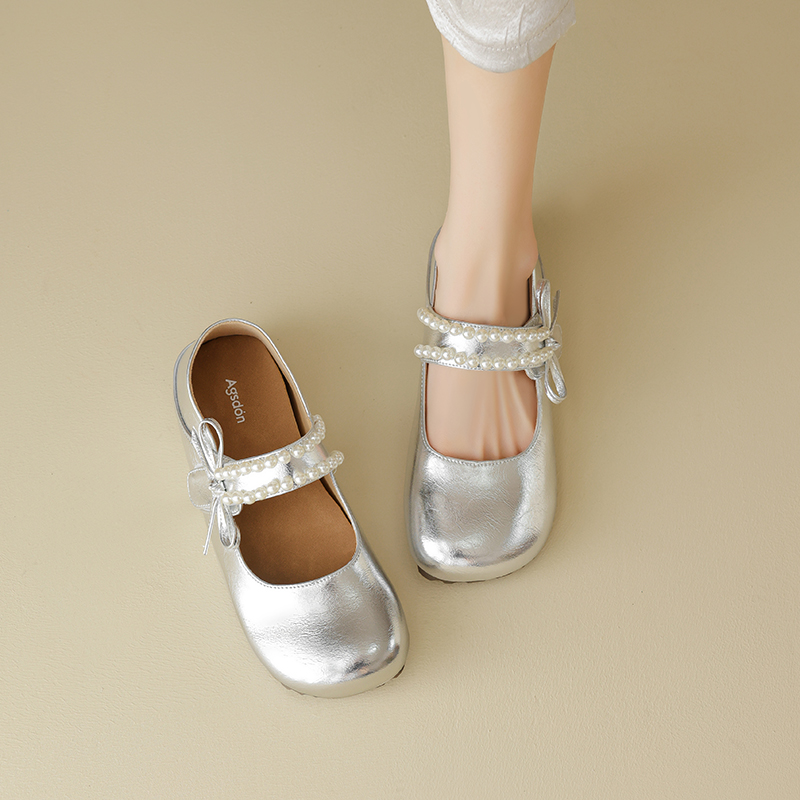 AGSDON Серебряные балетки Мэри Джейн, цвет Silver