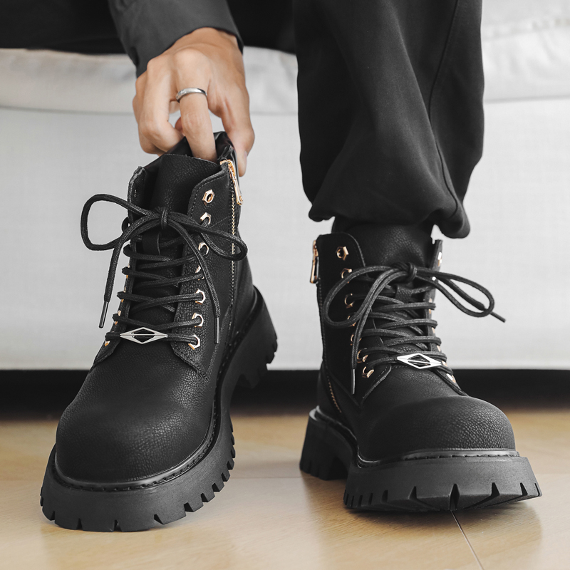 LINGPAO Черные короткие ботинки мартин, цвет Black