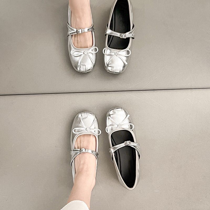 NX DOUGHNUT Серебряные балетки Мэри Джейн, цвет Silver