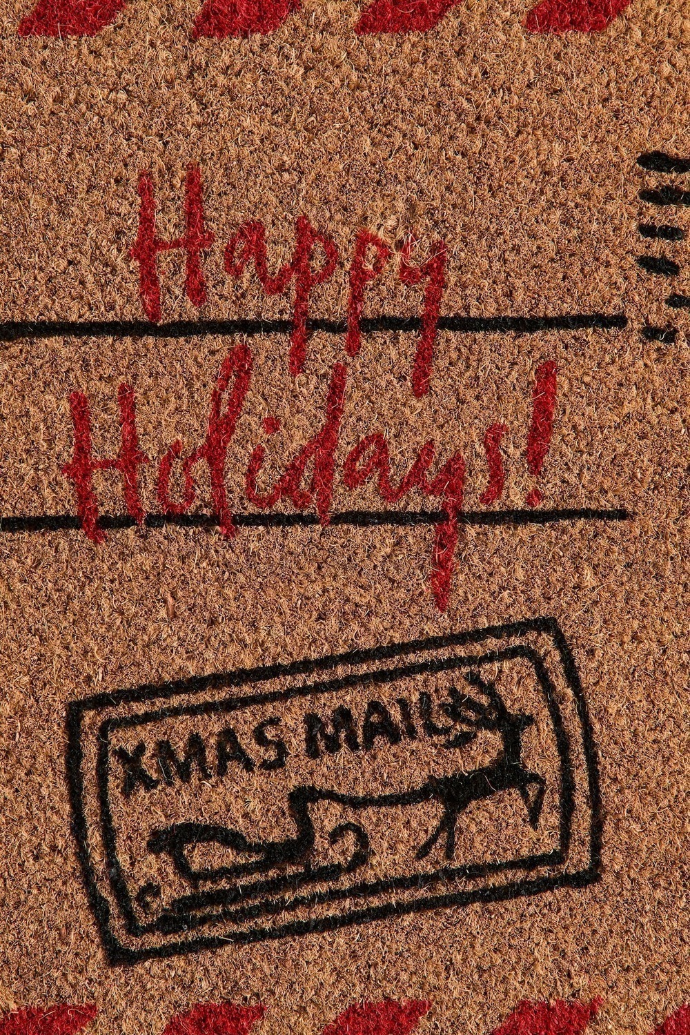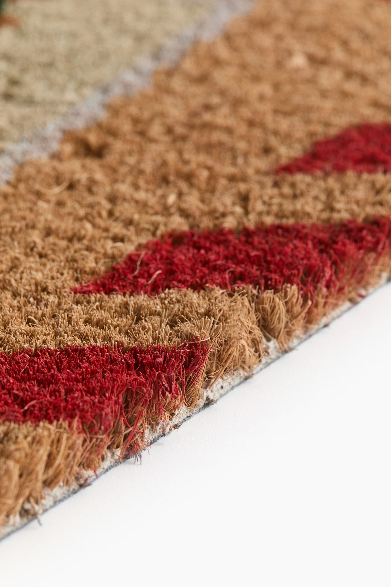 Придверный коврик с декоративным принтом, изготовлен из прочного кокосового волокна. Противоскользящая подложка.