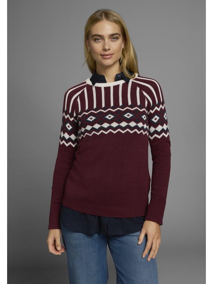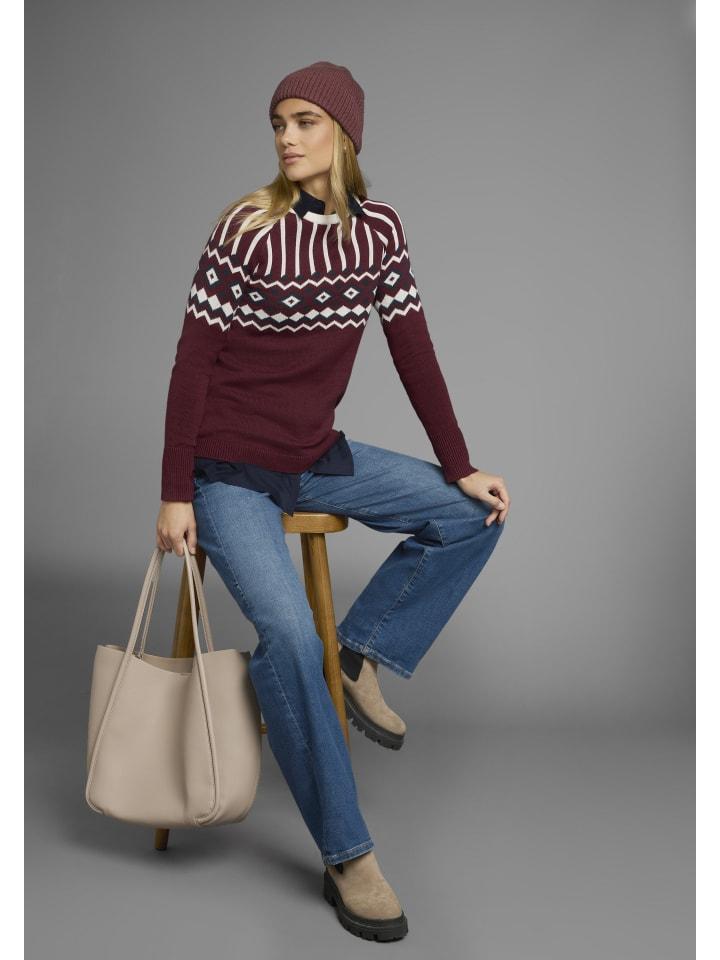 Классический женский жаккардовый свитер от AJC в норвежском стиле и скандинавском стиле. Облегающий крой, закрывающий бедра. Длинные рукава. Благодаря эластичной тонкой вязке, верх не сковывает движений и сохраняет тепло.