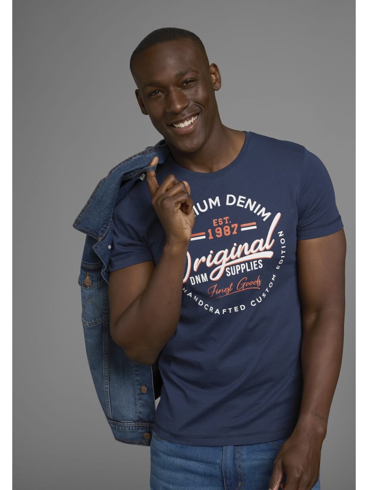 Простая мужская футболка от бренда AJC. Приталенный крой и повседневный принт. Благодаря эластичному трикотажу верх мягкий и удобный.
