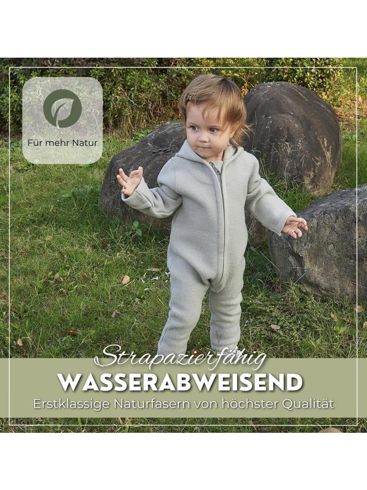 Шерстяной комбинезон оснащен защитным капюшоном, который защищает голову вашего ребенка от непогоды. Кроме того, дополнительные отвороты на рукавах и штанинах позволяют согреть руки и ноги. Высококачественная молния обеспечивает легкость одевания и раздевания.