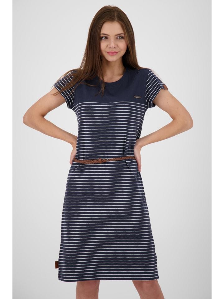 Это игривое, но в то же время спортивное трикотажное платье LeonieAK от Alife and Kickin станет вашим новым любимым предметом летнего гардероба! Стильные полоски по всей длине в морском стиле - настоящий тренд, создающий ощущение настоящего отпуска. Длина до колена и слегка приталенный крой, подчеркнутый плетеным поясом, создают женственный силуэт, и вы будете выглядеть просто потрясающе в этом летнем платье. Это женское платье с короткими рукавами и милыми модными деталями, такими как слегка присборенная плечевая часть с декоративной пуговицей-биркой, также воплощает собой модную изысканность. Высококачественная смесь хлопка с добавлением полиэстера невероятно комфортна и всегда приятна к телу, даже в долгие дни. Сочетайте платье с повседневными кроссовками, балетками или сандалиями и чувствуйте себя как дома в новом платье LeonieAK от Alife and Kickin.