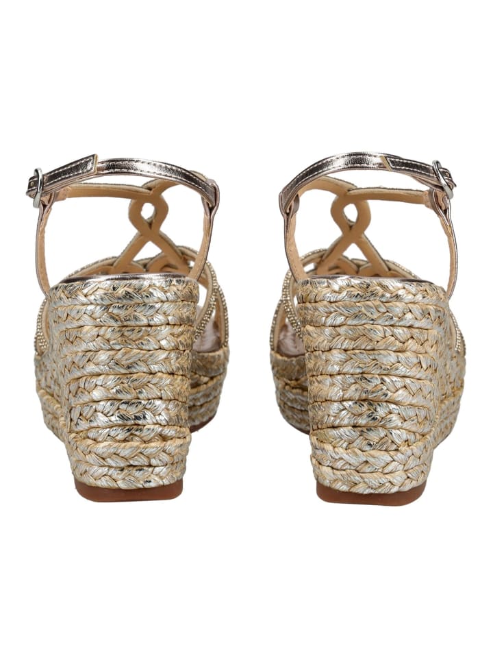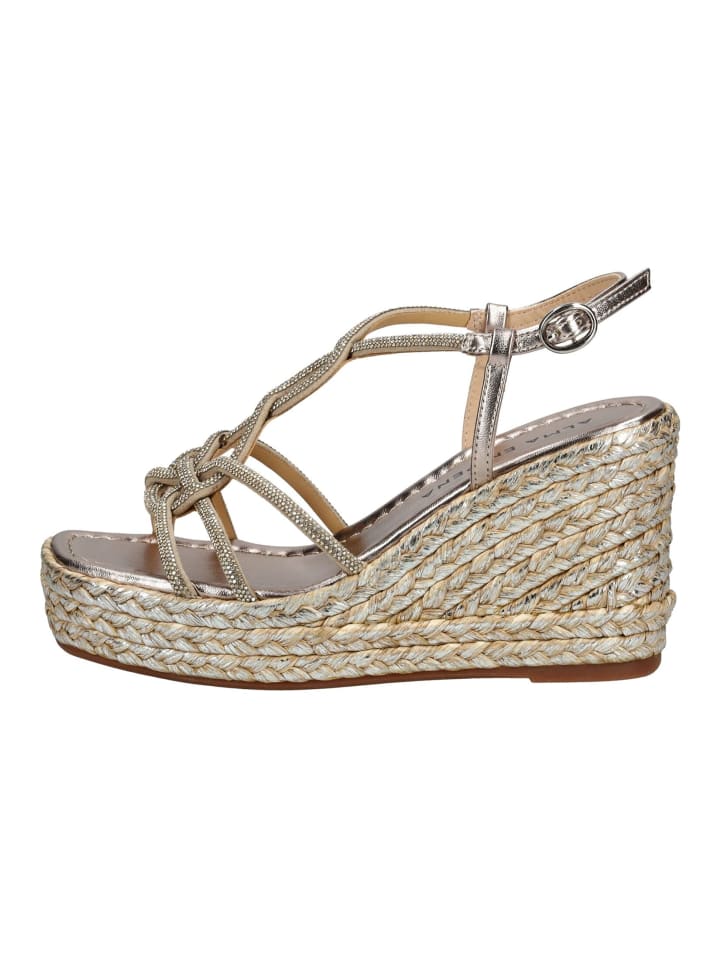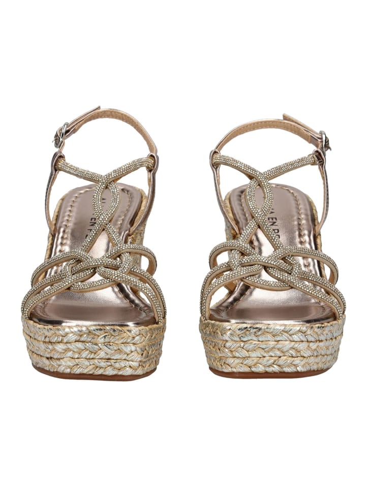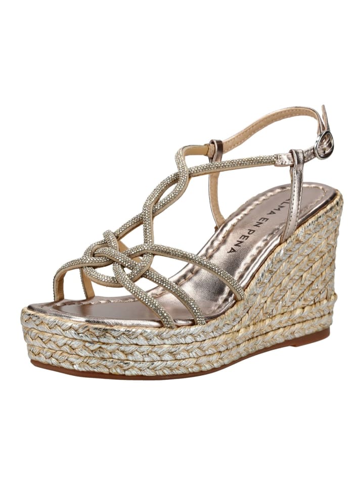 В этих летних босоножках на танкетке от ALMA EN PENA вы привлечете всеобщее внимание. Изысканно декорированные ремешки со стразами делают эти босоножки эффектным акцентом. Практичная застежка обеспечивает надежную фиксацию.