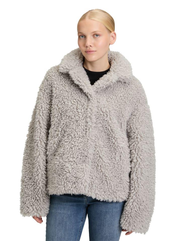 Ищете что-то особенное? Плюшевая куртка Amber & June из полиэстера, прямого кроя, с воротником-стойкой или отложным воротником, потайной застежкой на кнопки и прорезными карманами.
