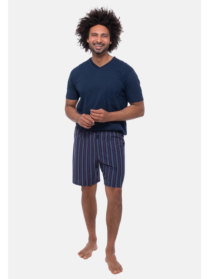 - Комплект состоит из рубашки с короткими рукавами и шорт.