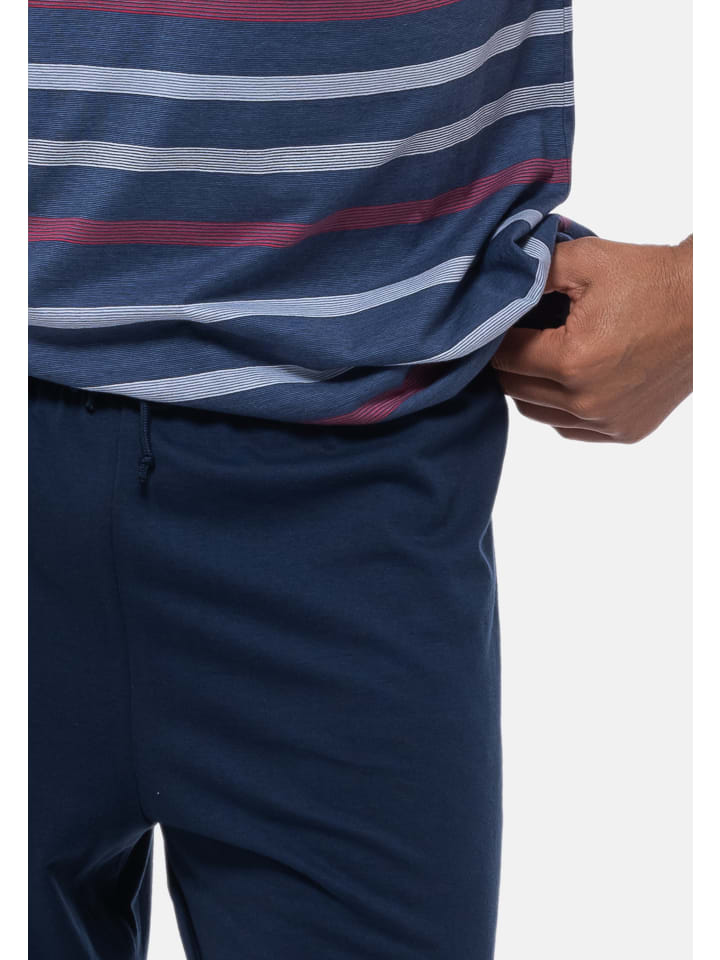 Этот мужской пижамный комплект из 100% органического хлопка впечатляет своей приятной для кожи и дышащей способностью. Натуральный материал обеспечивает удобную посадку и идеальный для спокойного сна. Идеально подходит для тех, кто ценит комфорт и экологичность.