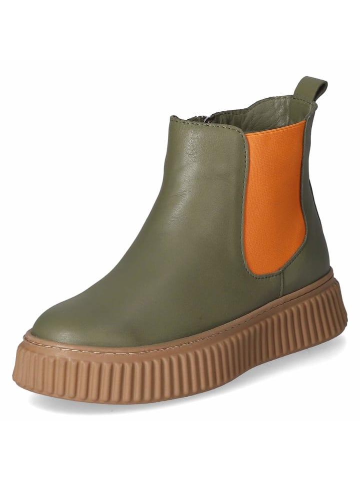 Зеленые ботинки челси от Andrea Conti отличаются уверенной простотой и оригинальной цветовой гаммой. Гладкая, прочная натуральная кожа сочетается с круглым носком и колодкой идеального размера. Боковая молния и язычок позволяют легко надевать ботинки, а эластичная оранжевая вставка на голенище добавляет гибкости и служит графическим акцентом. Легкая подкладка обеспечит комфорт в прохладную погоду, а съемная стелька обеспечит комфорт при длительном ношении. Усиленная пятка и нескользящая подошва обеспечат устойчивость и сцепление на различных поверхностях. Модный совет: сочетайте этот трикотажный комплект с кардиганом и платьем миди в оттенках шалфея и черных колготок для создания элегантного образа в стиле демисезон. Оранжевый можно подобрать с помощью узкой резинки для волос.
