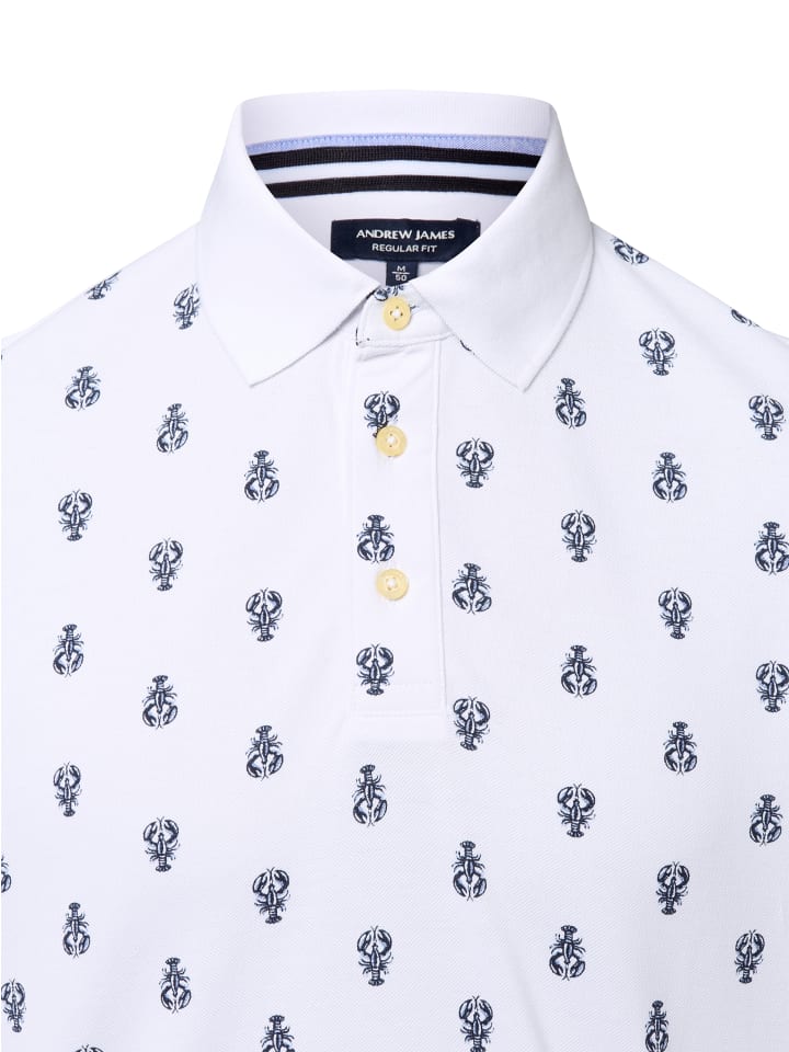 Сплошной принт и характерная структура хлопкового пике придают этой повседневной рубашке-поло от Andrew James классический морской вид.