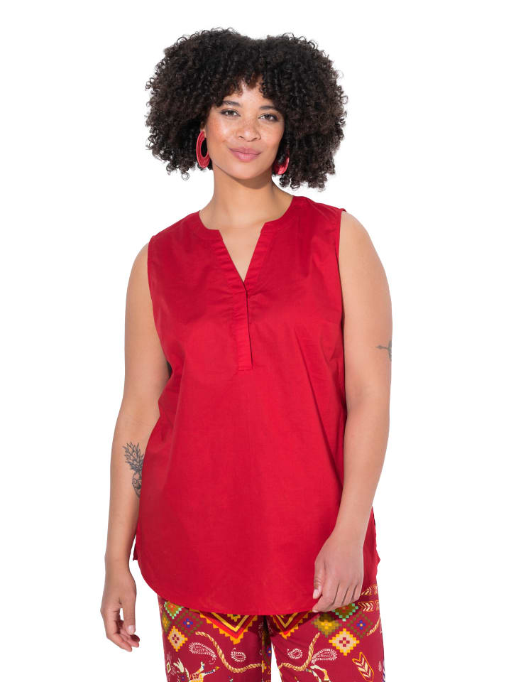 Верх блузки из мягкой вискозы с туникообразным вырезом и закругленным подолом.