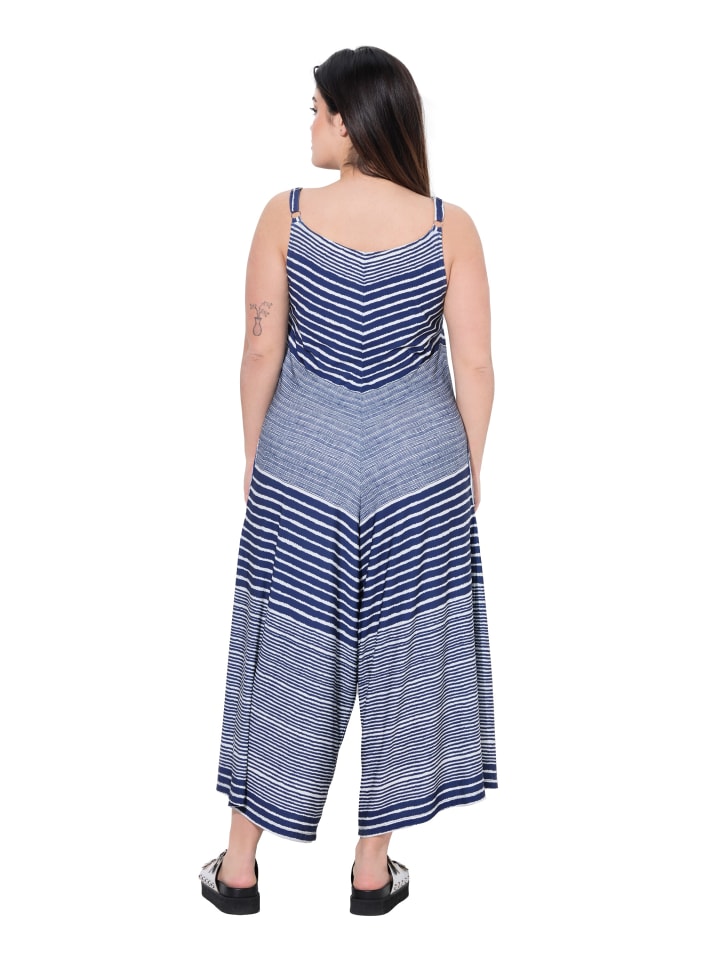 Комбинезон А-силуэта из комфортного эластичного трикотажа с полосками. Регулируемые лямки, V-образный вырез и боковые карманы.
